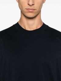 crew-neck T-shirt Highlights - Oxford blue - Cotton-silk blend - Jersey texture - Crew neck - Short sleeves - Short side slits - Straight hem Made in Italy Composition Cotton 70%, Silk 30% SIZE & FIT Model measurements Height 6 ft 2 in(1.87 m) Bust/Chest 36.22 in(92 cm) Hips 35.43 in(90 cm) Waist 29.13 in(74 cm) FittingInformation Designed for a regular fit allowing for a comfortably loose fit throughout the body Made from a midweight non-stretch fabric, this piece offers minimal elasticity when worn