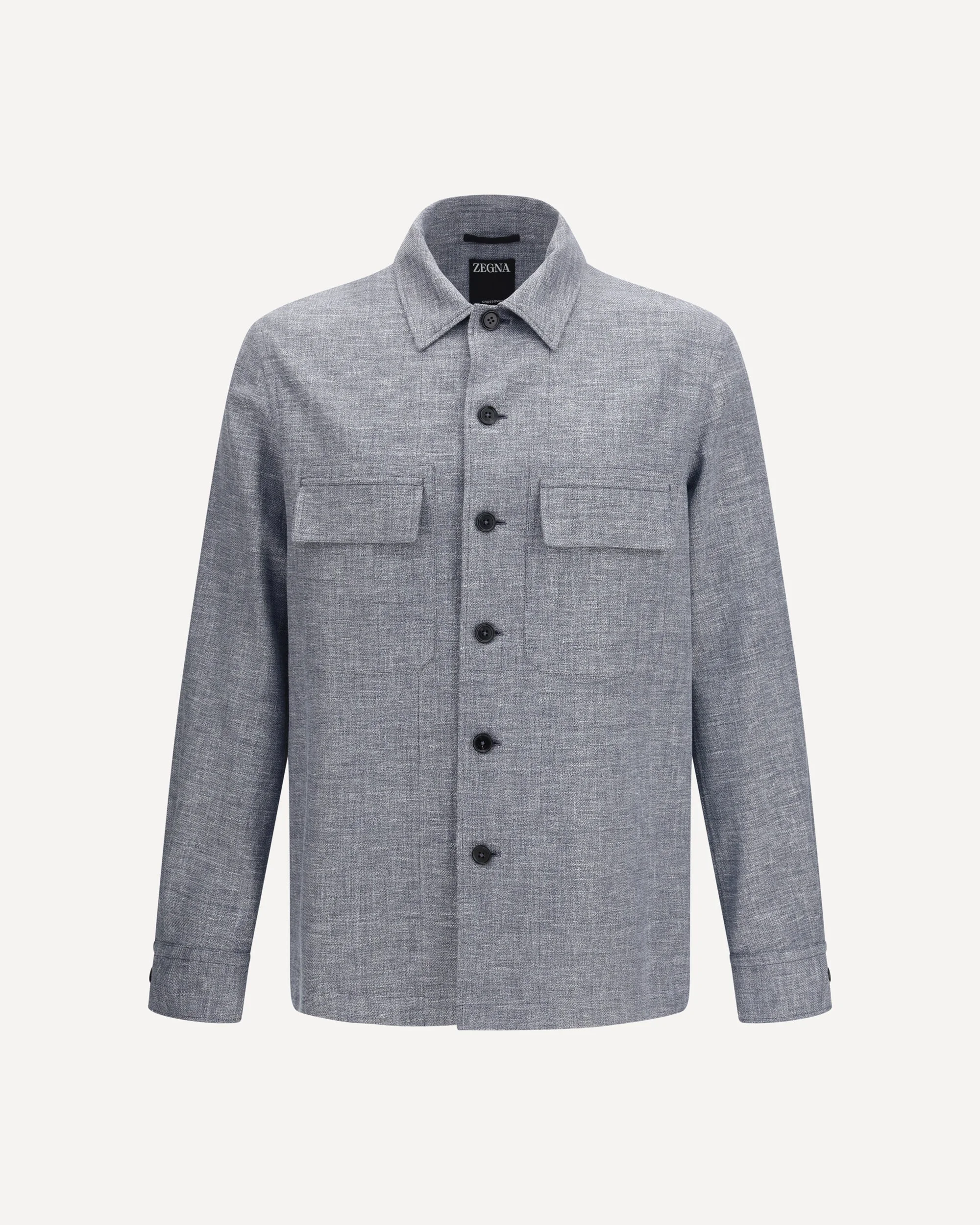 The crossover Shirt Jacket in linen, wool and silk by Zegna combines premium materials with a contemporary design. It features a front button closure and a classic shirt collar. The long sleeves are finished with buttoned cuffs and elbow patches, adding a functional and distinctive touch. On the back, at the nape, a leather Zegna 232 Road logo patch is applied. Chest patch pockets with flaps, side slits at the hem, and a straight hem complete the piece, creating a balanced and versatile silhouette. DETAILS - Sku: UHV22A3SOT6BB07G_054 - Season: SS26 - Fit: Regular - Composition: GENERAL 50% Merino Wool Ovis Aries 31% Linen 19% Silk - MADE IN ITALY