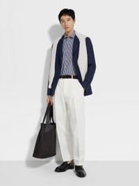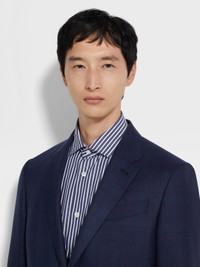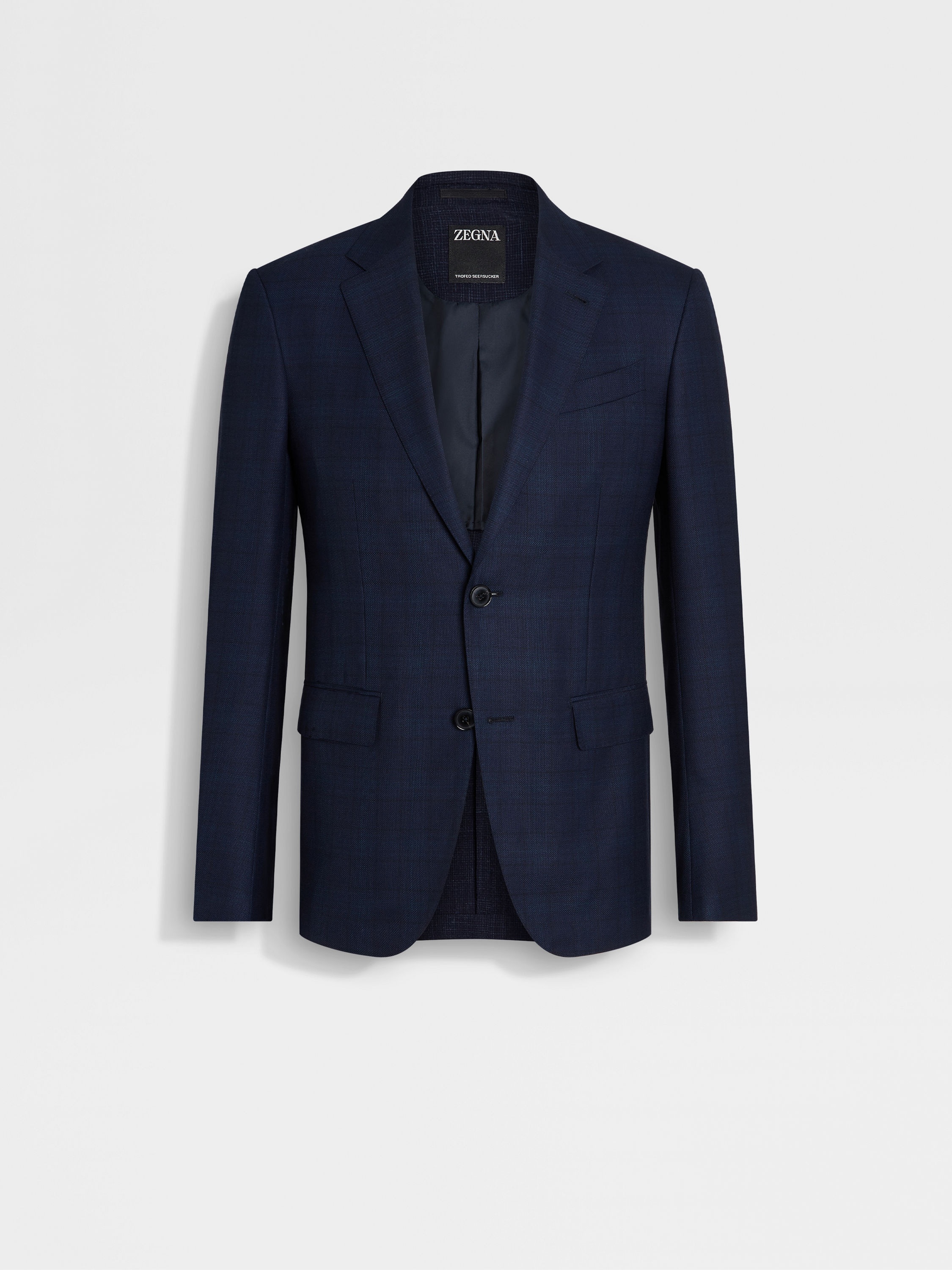 This dark blue and teal blue Prince of Wales jacket is crafted from superfine 15milmil15 wool. INFO Carefully selected ultra-fine wool fibers give this 15milmil15 wool jacket a unique, silky finish, providing the perfect backdrop for a timeless dark blue and teal blue Prince of Wales pattern. Left unlined and elevated with classic notch lapels and flap pockets. PRODUCT CODE 940509A9-10FT20 MATERIALS AND CARE 100% Wool 15milmil15 is crafted from superfine wool that measures just 15.2 microns in diameter. Incredibly soft and lightweight, it is well suited for sophisticated garments. Do not wash. Do not bleach. Do not tumble dry. Professional dry cleaning in tetrachloroethene and hydrocarbons, mild process. FIT AND PRODUCT DETAILS • Regular fit • Tailoring jacket • Double vents • Notch lapels • Prince of Wales pattern • Button closure • Flap pockets • Deconstructed, canvas • Unlined • 73.5 cm length on size 48