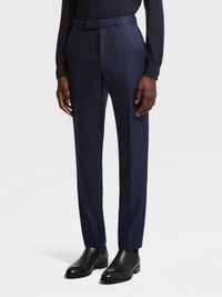 The dark blue Oasi Cashmere tailoring suit showcases the beauty of fine natural materials. INFO Reflecting Zegna's commitment to luxury textiles, the dark blue Oasi Cashmere tailoring suit transforms a classic colorway with the soft finish of specially selected cashmere. The dark blue suit is styled with flat-front pants for a streamlined look. PRODUCT CODE 629N01A6-21L2N5 MATERIALS AND CARE 100% Cashmere This Oasi Cashmere Collection garment was Born in Oasi Zegna, our 100km² natural territory and the home of our values. Crafted from cashmere of uncompromising quality and softness, the Oasi Cashmere Collection follows in the footsteps of our founder, who envisioned a vertically integrated system of producing textiles. Do not wash. Do not bleach. Do not tumble dry. Iron at max 110°C. Professional dry cleaning in tetrachloroethene and hydrocarbons, mild process. FIT AND PRODUCT DETAILS • Regular fit • Drop 7 • Tailoring suit • Double vents • Notch lapels • Flap pockets • Canvas construction • Fully lined • 74.5 cm length on size 48 • Flat front pants, 20 cm hem • Model is 187 cm tall (6.1 feet) and wears an Italian size 48. Sleeves and pants are unfinished. You can bring your jacket and pants to our boutiques for alterations.