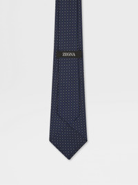 Bring refined charm to formal looks with this dark blue geometric silk tie. INFO The sumptuous sheen of pure mulberry silk provides a sublime backdrop for an elegant geometric pattern with this jacquard tie. Presented in a refined dark blue colorway. PRODUCT CODE Z9C12TA9-1PC-BL1 MATERIALS AND CARE Main body: 100% Mulberry Silk Lining: 100% Mulberry Silk Do not wash. Do not bleach. Do not tumble dry. Do not iron. Professional dry cleaning in tetrachloroethene and hydrocarbons, mild process. FIT AND PRODUCT DETAILS • Blade width: 8 cm / 3.1 in • Geometric jacquard pattern • Made in Italy