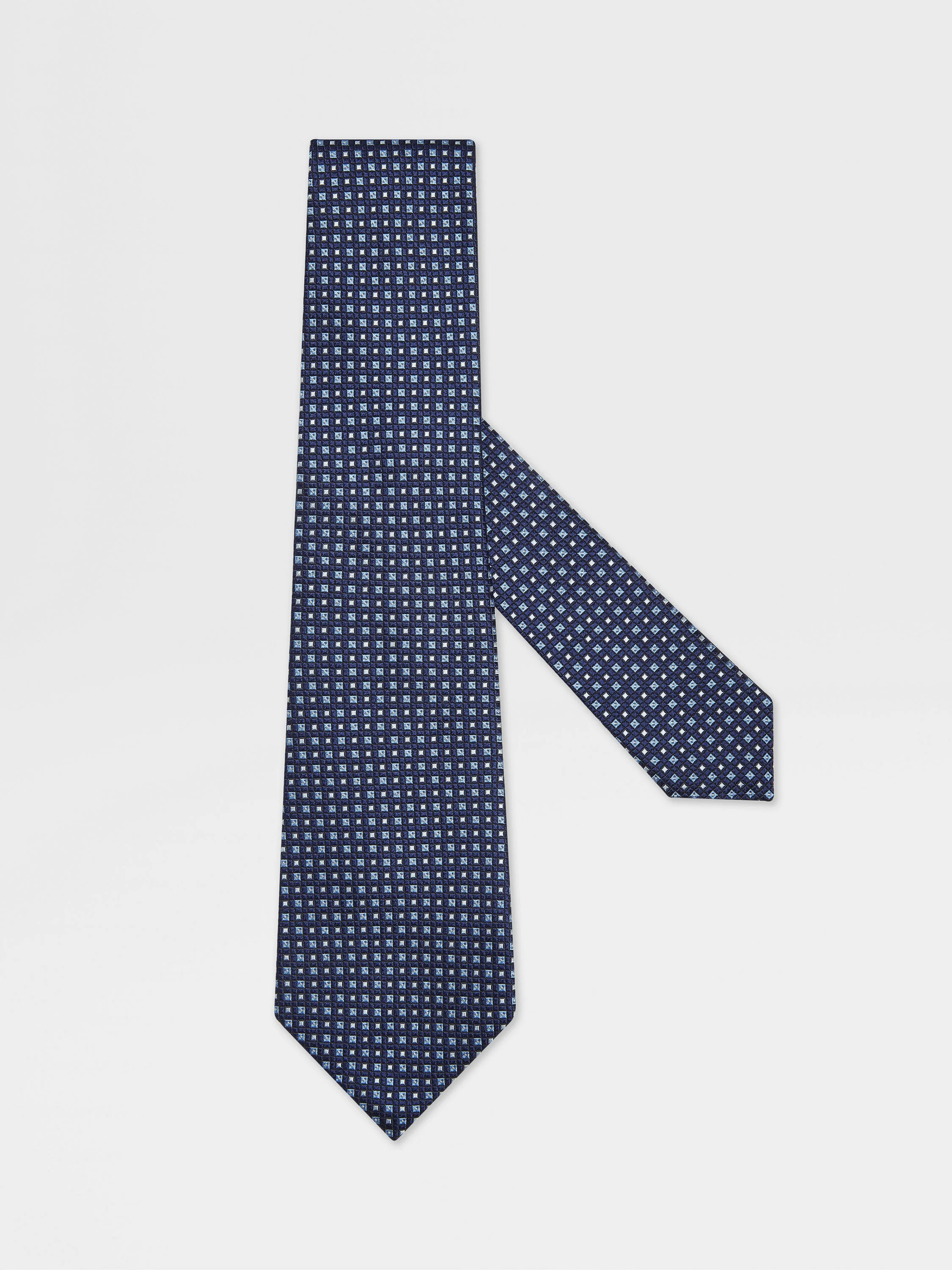 This dark blue jacquard tie is crafted from pure Mulberry silk with a geometric pattern. INFO Exuding dynamic charm with its geometric motif, this dark blue jacquard tie is an office-to-evening essential. Crafted from pure Mulberry silk. PRODUCT CODE Z2C32TA2-1PC-BL1 MATERIALS AND CARE Main body: 100% Mulberry Silk Lining: 100% Mulberry Silk Do not wash. Do not bleach. Do not tumble dry. Do not iron. Professional dry cleaning in tetrachloroethene and hydrocarbons, mild process. FIT AND PRODUCT DETAILS • Blade width: 8 cm / 3.1 in • Geometric jacquard pattern