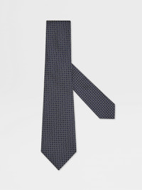This jacquard tie brings modern charm to formal looks with its dark blue netting pattern. INFO Elevate office-to-evening ensembles in this luxuriously soft pure Mulberry silk tie. An elegant dark blue colorway provides the perfect backdrop for a distinctive netting pattern. PRODUCT CODE Z2C42TA2-1PC-BL1 MATERIALS AND CARE Main body: 100% Mulberry Silk Lining: 100% Mulberry Silk Do not wash. Do not bleach. Do not tumble dry. Do not iron. Professional dry cleaning in tetrachloroethene and hydrocarbons, mild process. FIT AND PRODUCT DETAILS • Blade width: 8 cm / 3.1 in • Netting pattern