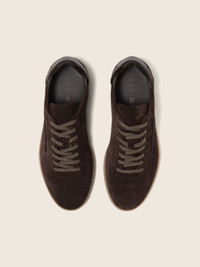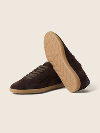 Innovation meets tradition with this 232 sneaker, crafted from dark brown suede with a honey-toned sole. INFO Made from dark brown suede, this 232 sneaker represents an evolution in ZEGNA's legacy of fine footwear with its deconstructed upper and seamless blend of contemporary and vintage. Styled with a high-grip natural rubber sole and a custom-designed insole. Named after the 232 Road in Oasi Zegna, this sneaker channels the spirit of adaptation. The sole is lightweight and flexible with a subtle grip, featuring a reinterpreted tread motif that mirrors the original 232 Road. Signature tonal stitching is complemented by a distinctive side Brand Mark, a subtle yet defining symbol of ZEGNA’s legacy. PRODUCT CODE LHSOY-S8218Z-TDM MATERIALS AND CARE Suede Clean the shoes with a specially designed brush for cleaning suede. Avoid contact with water and substances containing alcohol (perfumes, solvents, etc.) and, in general, any abrasive products. In the event of contact with water, it is important to allow the shoes to dry completely before cleaning. Clean the rubber sole with a product specially designed for cleaning rubber. Store the shoes in a cool, dry place in the fabric bags provided at the time of purchase. FIT AND PRODUCT DETAILS • Tonal lining • Honey color natural rubber sole • Removable insole • Made in Italy • Fits true to size • Comes with a shoe bag