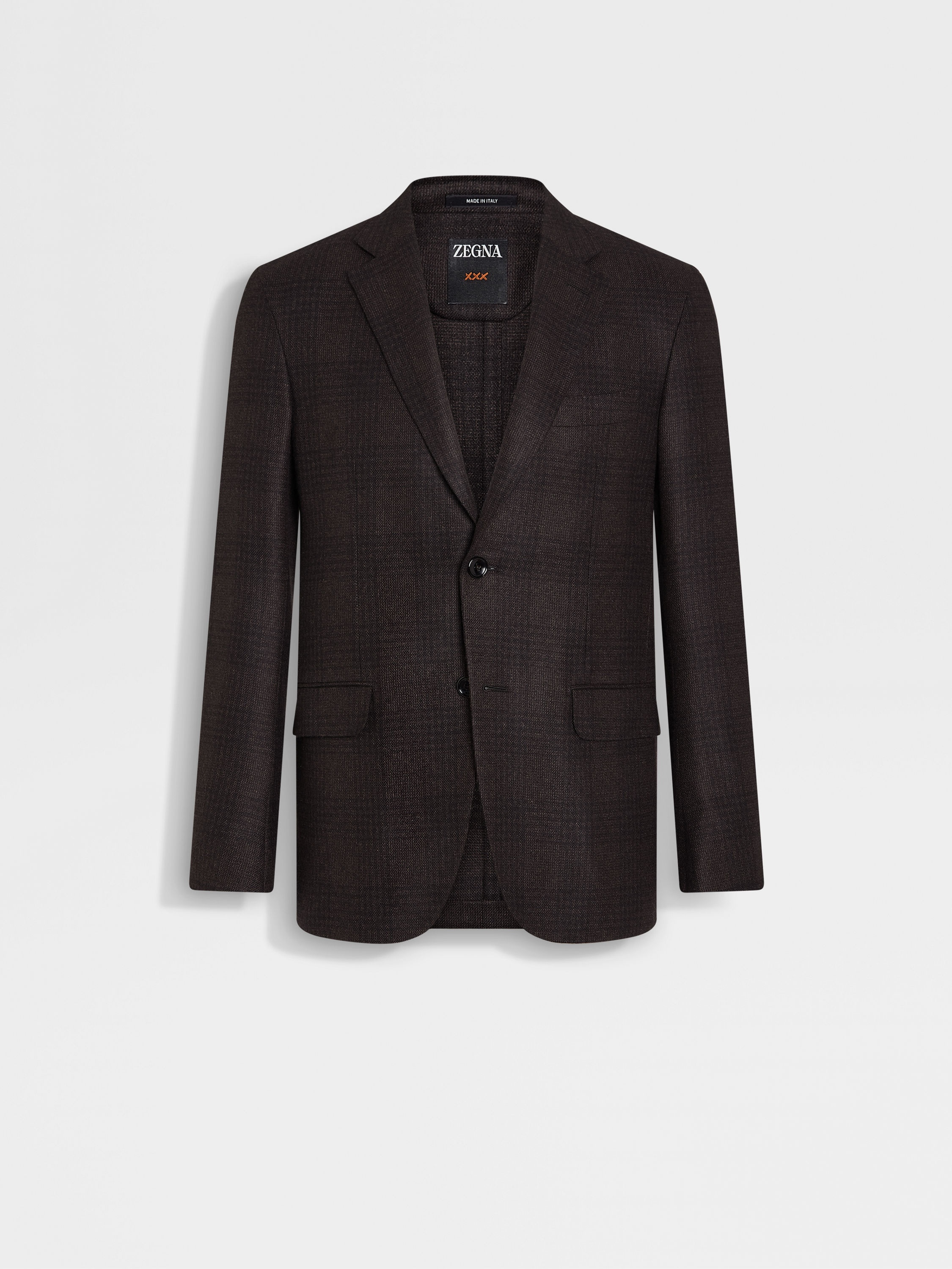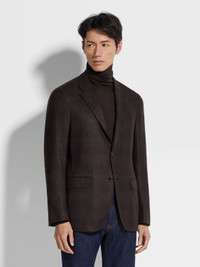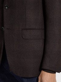 The dark brown and brown silk and cashmere jacket showcases the natural beauty of two luxurious fibers. INFO Featuring a classic, checked pattern, the dark brown and brown silk and cashmere jacket is both airy and naturally luminous. The cardigan jacket is unlined and styled with flap pockets. PRODUCT CODE 859N53A8-10JPN0 MATERIALS AND CARE 51% Mulberry Silk; 49% Cashmere Do not wash. Do not bleach. Do not tumble dry. Iron at max 110°C. Professional dry cleaning in tetrachloroethene and hydrocarbons, mild process. FIT AND PRODUCT DETAILS • Regular fit • Tailoring jacket • Double vents • Notch lapels • Checked pattern • Button closure • Flap pockets • Deconstructed, canvas • Unlined • 74 cm length on size 48 Sleeves hems are unfinished. You can bring your jacket to our boutiques for alterations.