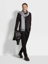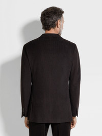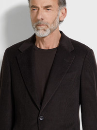 Sumptuously soft, this dark brown corduroy jacket is made from a cashmere, wool and silk blend. INFO Nothing says effortless luxury like a refined blend of cashmere, wool and silk. This lined corduroy jacket elevates smart ensembles with a rich dark brown colorway and a timeless silhouette, featuring notch lapels, double vents and flap pockets. PRODUCT CODE 270552A2-12C2N0 MATERIALS AND CARE 51% Cashmere; 29% Wool; 19% Mulberry Silk; 1% Elastane Do not wash. Do not bleach. Do not tumble dry. Iron at max 110°C. Professional dry cleaning in tetrachloroethene and hydrocarbons, mild process. FIT AND PRODUCT DETAILS • Regular fit • Tailoring jacket • Double vents • Notch lapels • Corduroy • Button closure • Flap pockets • Deconstructed, canvas • Lined • 75 cm length on size 48