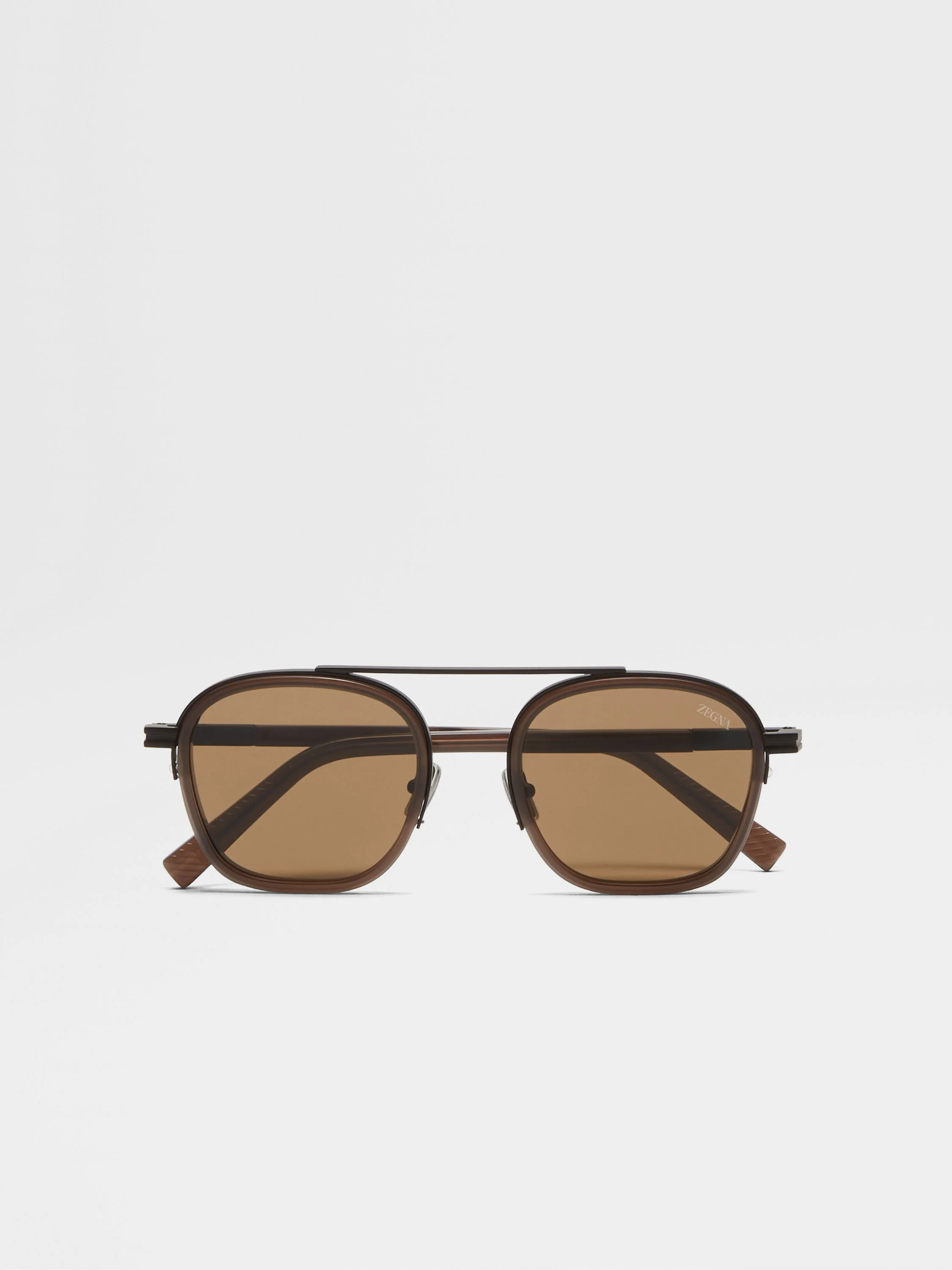 With their special construction, the dark brown Orizzonte I acetate and metal sunglasses are an ultra-contemporary choice. INFO These dark brown Orizzonte I sunglasses are characterized by a special construction with a high metal bridge, providing the inspiration behind their name. Defined by a stand-out combination of acetate and metal, these frames are equipped with adjustable nose pads for a secure fit, featuring the Zegna Logo. Enriched with chiseled lines on the temple tips and the shiny dark ruthenium Zegna 232 Road Brand Mark on the corners. ORIZZONTE (oridˈdzonte) — ITALIAN FOR 'HORIZON' The inspiration for the Orizzonte I Sunglasses was Born in Oasi Zegna — the home of our values in the Italian Alps. Shaped to a contemporary unbridged silhouette, they're accented with our iconic 232 Road Brand Mark and ZEGNA logo, then finessed with a slender brow bar that draws from the panoramic mountain-top views in a 100km² natural territory. PRODUCT CODE EZ0231-5148E MATERIALS AND CARE Acetate; Metal Clean your eyewear using a soft cloth, preferably microfiber, with water or a mild detergent. To avoid scratching the lenses, never use paper towels or clothing to clean your eyewear. Do not use household detergents or soaps to clean your eyewear; these products will damage the lenses over time. FIT AND PRODUCT DETAILS • Lens 51 mm – Bridge 22 mm – Temple 145 mm • Base 2 • Finishing: shiny • Single bridge • Acetate end tips and rims • Matte aniline Zegna 232 Road Brand Mark on the temples as a corner detail • Laser-inscribed Zegna Logo on the inside of the temple and on the lens • Adjustable nose pads with bold Zegna Logo • Chiseled lines on the temple tips