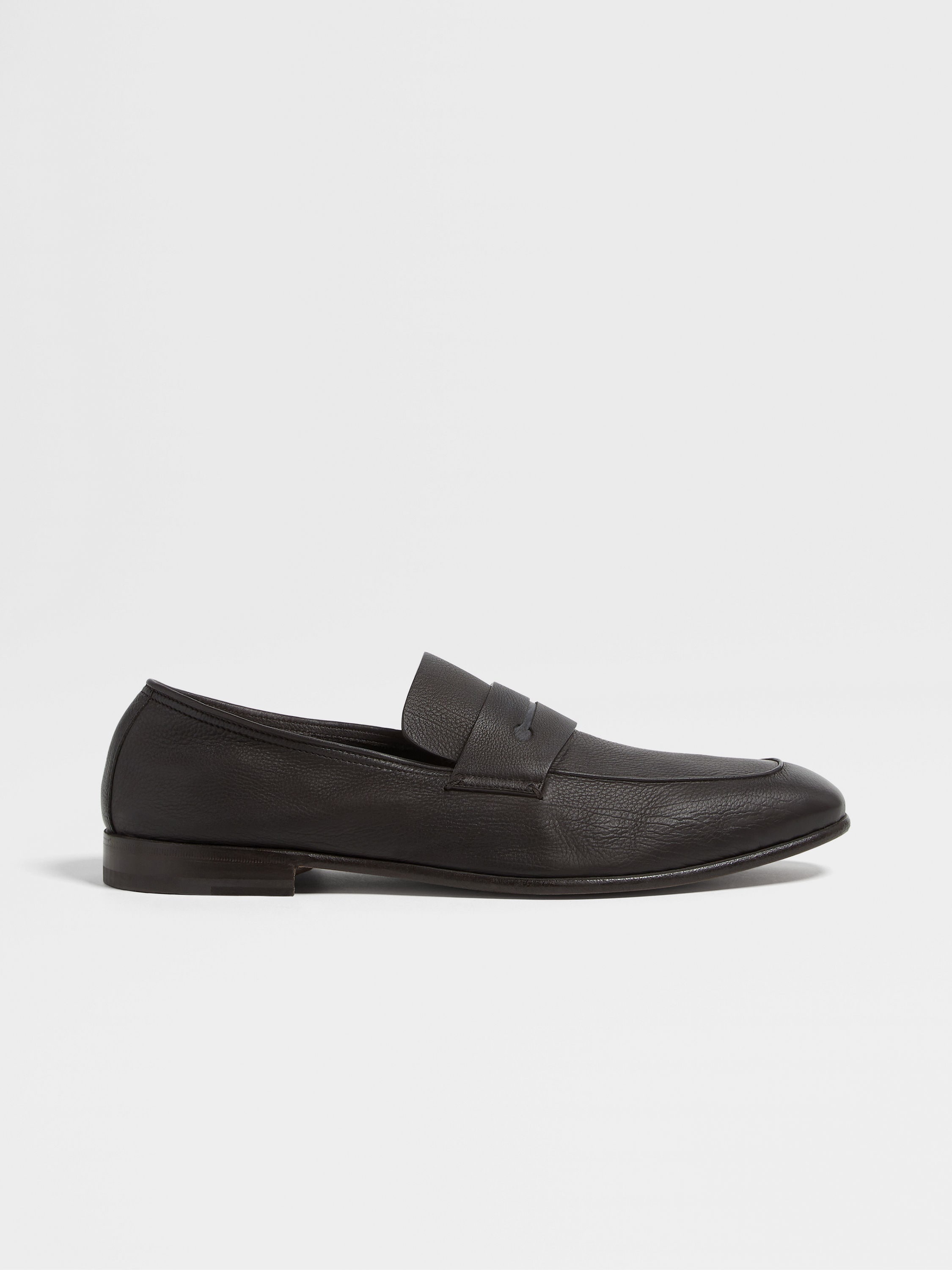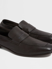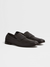 The dark brown SECONDSKIN L'Asola loafers are named after the buttonhole. INFO Made from specially selected SECONDSKIN, the dark brown leather L'Asola loafers mold to the wearer's foot. This unique material is paired with an ultra-flexible construction to create the most comfortable choice of formal footwear. The iconic L'Asola cut-out on the band signs off the look. Customize these loafers with our Made to Measure Service. For more information, please contact our Customer Care or visit your nearest stores. PRODUCT CODE LHOTA-A4912Z-AMO MATERIALS AND CARE Calfskin SECONDSKIN is crafted by tanneries selected for their renowned expertise. Fine, supple and incredibly soft to the touch, it moulds to your proportions over time — offering impeccable comfort with each wear. Clean with a soft cloth. Maintain the leather's glossy appearance by applying a small dab of polish and distributing it uniformly over the surface with a soft cloth. Let dry for a few minutes, then vigorously shine with clean, soft cloth. Avoid contact with abrasives, including hard-bristled brushes, and substances containing alcohol, such as perfumes, solvents, etc. In case of contact with water, it is important to let the footwear dry completely before cleaning. Store in the included dust bag in a cool, dry place. FIT AND PRODUCT DETAILS • SECONDSKIN calfskin • L'Asola band • Reverse construction • Leather outsole • Fits true to size • Comes with a shoe bag