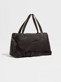 Soft, spacious and sleek: our dark brown SECONDSKIN holdall is your new go-to weekend bag. INFO Styled with a roomy silhouette perfect for travel, this dark brown weekender is beautifully crafted from incredibly soft and supple SECONDSKIN leather. Elevated with ultrablack polished hardware and a refined Zegna Logo. PRODUCT CODE LHOTO-C2262Z-AMO MATERIALS AND CARE Main body: Calf Leather Lining: 100% Cotton SECONDSKIN is crafted by tanneries selected for their renowned expertise. Fine, supple and incredibly soft to the touch, it moulds to your proportions over time — offering impeccable comfort with each wear. Protect from moisture and do not place near direct sources of heat. Clean with a soft cloth. Do not use solvents or polishes. Avoid contact with cosmetics, perfumes and hand lotions and sanitizers. Store in a cool, dry, well-ventilated place. Stow in the included dust bag when not in use. FIT AND PRODUCT DETAILS • Zip closure • Zegna Logo • Polished ultrablack finish • Grey melange cotton lining • 32 x 55 x 9 cm / 12.6 x 21.6 x 7.5 in • Made in Italy