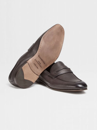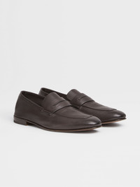L'Asola moccasin in soft calfskin will add a sophisticated element to a look. INFO L'Asola is the tailored cut of a buttonhole borrowed from Ermenegildo Zegna suits, but is also the name of one of the Brand's best-selling footwear styles. These dark brown moccasins are expertly crafted in soft calfskin using an artisanal Reverse construction, providing comfort and flexibility. PRODUCT CODE LHOTA-A4912X-AMO MATERIALS AND CARE Soft calfskin FIT AND PRODUCT DETAILS • Soft calfskin • Iconic L'Asola cut on the band • Reverse construction • Unlined • Leather sole • Made in Italy • Fits true to size • Comes with a shoe bag