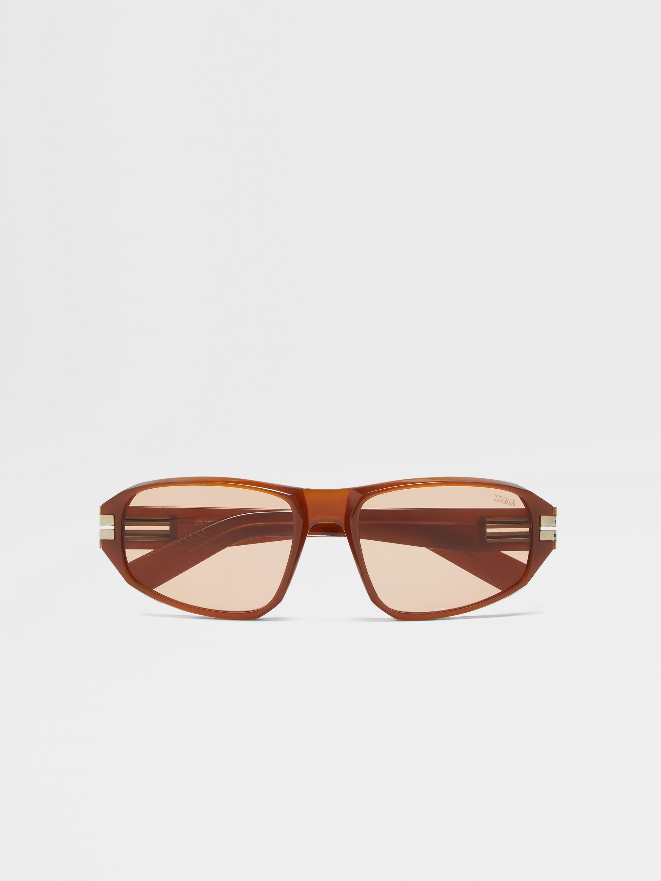 The Dark Foliage acetate sunglasses are accented with metalic inserts at the corners. INFO A shiny finish adds an extra touch of style to the Dark Foliage acetate sunglasses' rectangular frame. The thicker sides and temples highlight the sturdy material, while the single bridge keeps the look streamlined. The iconic, metal Zegna 232 Road Brand Mark accentuates the temples, and the temple tips are fitted with details to ensure they stay in place. The sunglasses come with a matching linen lanyard, which fastens with a leather closure. PRODUCT CODE EZ0262-5845E MATERIALS AND CARE Full Acetate Clean your eyewear using a soft cloth, preferably microfiber, with water or a mild detergent. To avoid scratching the lenses, never use paper towels or clothing to clean your eyewear. Do not use household detergents or soaps to clean your eyewear; these products will damage the lenses over time. FIT AND PRODUCT DETAILS • Finishing: shiny • Not suitable for mounting prescription lenses • Single bridge • Matching linen lanyard with leather closure • Zegna Logo on the lens • Parallel line details on the temple tips for optimal grip • Metal Zegna 232 Road Brand Mark on the corners of the temples