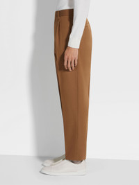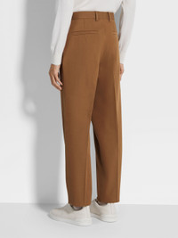 The Dark Foliage cotton and wool pants are a sophisticated everyday staple. INFO Styled with a crisp pleat in the front, the Dark Foliage cotton and wool pants are made from a lightweight blend of natural materials. Soft and breathable, they hold their shape throughout busy days. The pants have slanted pockets and a welt pocket on the back. PRODUCT CODE UEI04A8-TP45-N05 MATERIALS AND CARE Main body: 57% Cotton; 43% Wool Lining: 100% Cotton Do not wash. Do not bleach. Do not tumble dry. Iron at max 110°C. Professional dry cleaning in hydrocarbons, mild process. Wash inside out. FIT AND PRODUCT DETAILS • Pleated fit • 19.5 open hem • Zip and button closure • Slanted pockets and back welt pocket