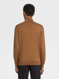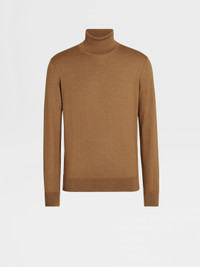 The dark Foliage mélange Cashseta turtleneck brings together the best of cashmere and silk. INFO Zegna's refined blend of cashmere and silk lends the dark Foliage mélange Cashseta turtleneck its distinctive finish. An elegant colorway complements the soft, natural knit. A staple of sophisticated wardrobes, the turtleneck creates a sleek silhouette. PRODUCT CODE E8J00-120-N95 MATERIALS AND CARE 70% Cashmere; 30% Mulberry Silk This sophisticated fabric combines the softness of cashmere with the smooth finish of fine silk. The yarns of Cashseta are dyed before the fabric is created, resulting in a mélange that is unique to each garment. Do not wash. Do not bleach. Do not tumble dry. Iron at max 110°C. Professional dry cleaning in hydrocarbons. FIT AND PRODUCT DETAILS • 18 gauge • Ribbed turtleneck • Long sleeves • Ribbed hem and cuffs • Regular fit