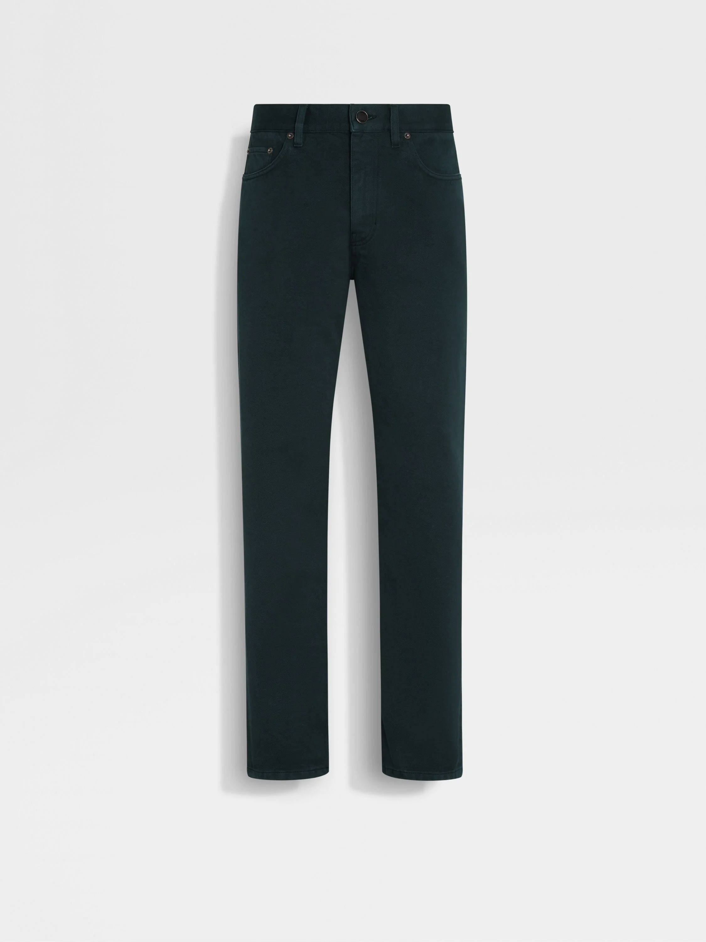 A delave finish injects laid-back elegance into these dark green cotton-cashmere Roccia pants. INFO Choose elevated casual style in these dark green twill Roccia pants, crafted from a cotton-cashmere blend with a delave effect: a seamless fusion of luxurious and laid-back. Designed with a streamlined slim-leg cut. ROCCIA ('rɔt:ʃa) — ITALIAN FOR 'ROCK' The inspiration for the Roccia Trousers was Born in Oasi Zegna, the home of our values in the Italian Alps. Inspired by classic workwear, they're both hardwearing and elegant, making them a reliable foundation to any look. PRODUCT CODE UGL68A2-CITYE-V08 MATERIALS AND CARE Main body: 96% Cotton; 4% Cashmere Lining: 100% Cotton Max washing temp 30°C, mild process. Do not bleach. Do not tumble dry. Line drying in the shade. Iron at max 110°C. Do not dry clean. Wash separately. Wash inside out. FIT AND PRODUCT DETAILS • Slim fit • 18 cm narrow hem • Zip and button closure • 5-pocket style • Delave effect • Garment-dyed • Twill fabric • Fabric weight: 500 grams • Model is 186 cm tall (6.1 feet) and wears a UK size 32.