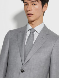 The light grey Oasi Cashmere suit showcases Zegna's uncompromising approach to luxury textiles. INFO Crafted from specially selected cashmere fibers, the light grey Oasi Cashmere suit is exquisitely soft and smooth to the touch. This special fabric is paired with a classic colorway to create a staple of elegant wardrobes. The tailoring suit is fully lined, pairing a jacket with notch lapels and flap pockets with flat front pants. PRODUCT CODE 829N02A8-21L2N5 MATERIALS AND CARE 100% Cashmere The inspiration behind this Oasi Cashmere Collection garment was Born in Oasi Zegna, our 100km² natural territory and the home of our values. It's crafted from Oasi Cashmere fibres, which ZEGNA commits to certifying as traceable from 2024. The Oasi Cashmere Collection follows in the footsteps of our founder, who envisioned a vertically integrated system of producing textiles. Do not wash. Do not bleach. Do not tumble dry. Iron at max 110°C. Professional dry cleaning in tetrachloroethene and hydrocarbons, mild process. FIT AND PRODUCT DETAILS • Regular fit • Drop 7 • Tailoring suit • Double vents • Notch lapels • Button closure • Flap pockets • Canvas construction • Fully lined • 74.5 cm length on size 48 • Flat front pants, 20 cm hem Sleeves and pants are unfinished. You can bring your jacket and pants to our boutiques for alterations.