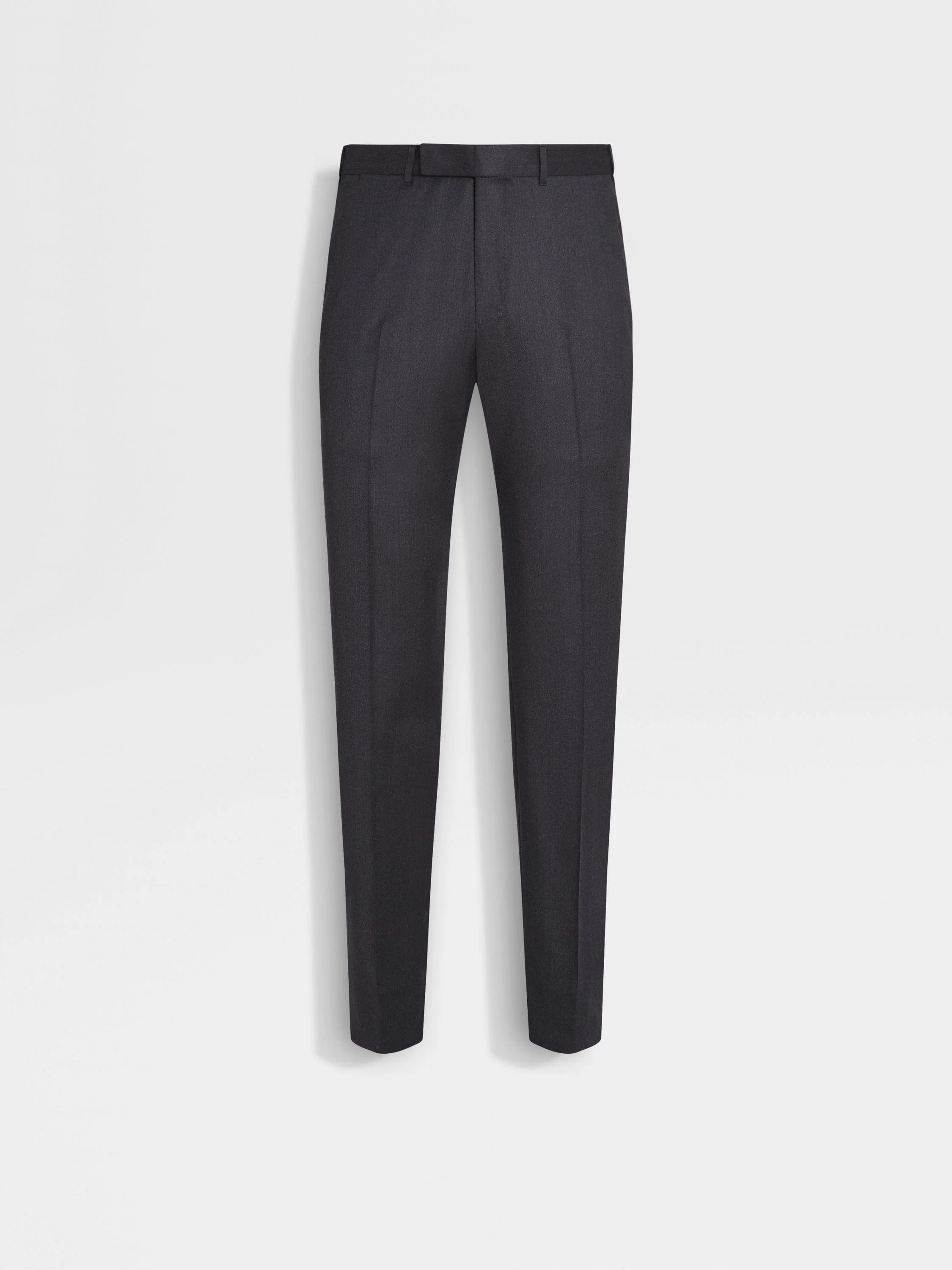 The dark grey Centoventimila wool pants are named for their exceptionally high thread count. INFO The dark grey Centoventimila wool pants' distinctive, silky feel comes from their exclusive wool fabric. This beautiful material lends a brilliant finish to the solid colorway. The tailoring pants are styled with a slim fit and a sleek, flat front. PRODUCT CODE 860F40A8-75N5N2 MATERIALS AND CARE 100% Wool Centoventimila — Italian for 120.000 — is named after its high threadcount. Garments crafted from this fabric are extremely lightweight and have a soft, silk-inspired hand. Do not wash. Do not bleach. Do not tumble dry. Iron at max 110°C. Professional dry cleaning in tetrachloroethene and hydrocarbons, mild process. FIT AND PRODUCT DETAILS • Slim fit • Tailoring pants • 19 cm hem • Flat front style • Hook, zip and button closure • Slanted pockets • Unlined Pants hems are unfinished. You can bring your pants to our boutiques for alterations.