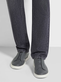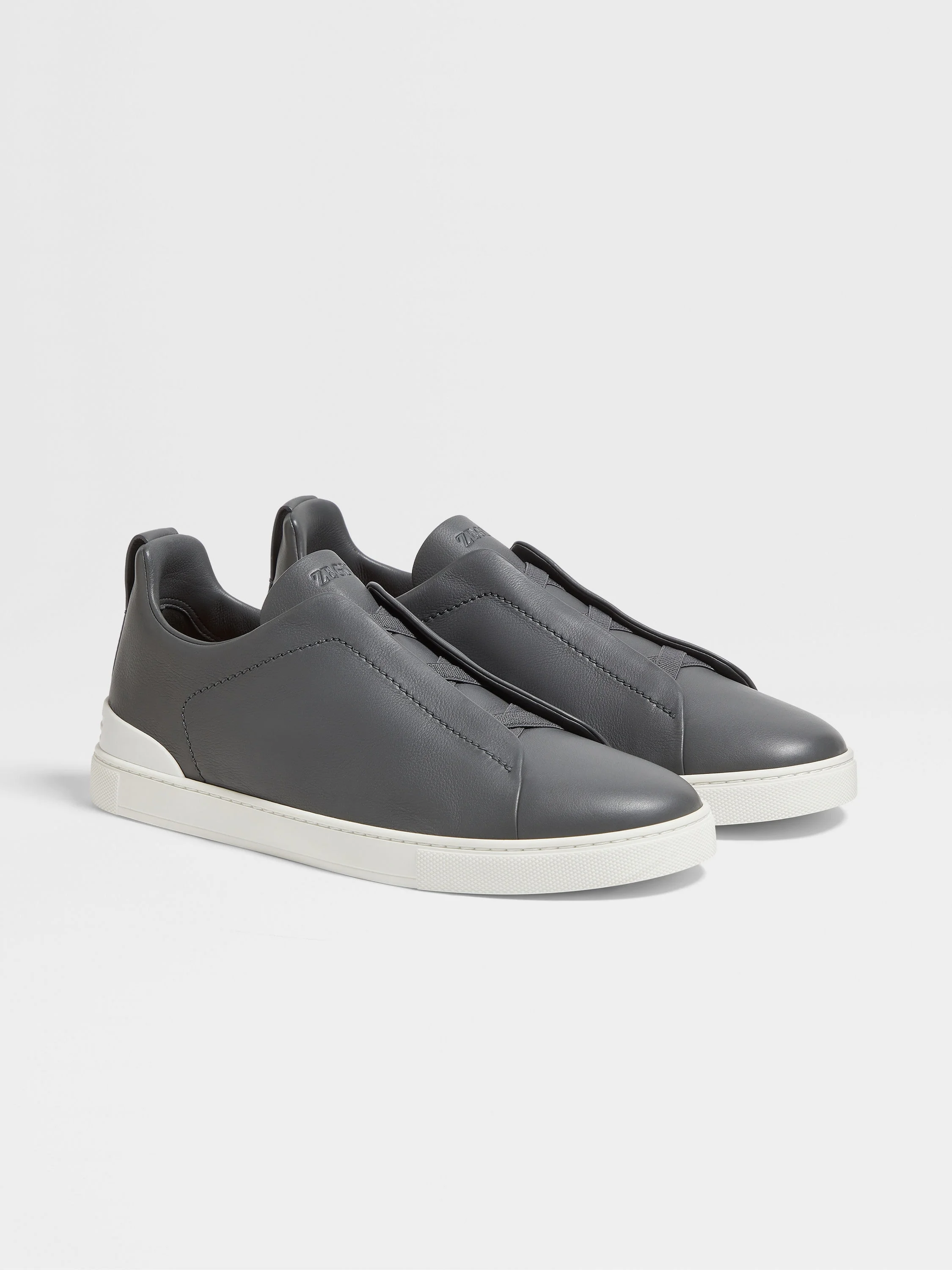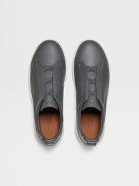 Crafted from ultra-light calf leather, the dark grey Triple Stitch™ SECONDSKIN sneakers offer exceptional comfort and flexibility. INFO The dark grey Triple Stitch™ SECONDSKIN sneakers are crafted from specially selected calf leather for even more flexibility. The brand’s signature triple-crossed elastic detail ensures an easy slip-on fit, while evoking the traditional hand-stitching of tailored jackets to symbolize and honor ZEGNA’s legacy of fine craftsmanship. The super soft, light uppers are complemented by a white rubber sole. The Triple Stitch™ SECONDSKIN shoes are the result of more than a century of generational craftsmanship, the sharing of wisdom, and dedication to innovation. Crafted from our SECONDSKIN leather, which ensures a glove-like fit, they are ideal for travelling in exceptional style and comfort. PRODUCT CODE LHOTA-S5207Z-RVN MATERIALS AND CARE Calf Leather SECONDSKIN is crafted by tanneries selected for their renowned expertise. Fine, supple and incredibly soft to the touch, it offers impeccable comfort with each wear. Clean the shoes with a soft cloth. Avoid contact with substances containing alcohol (perfumes, solvents, etc.) and, in general, any abrasive products. In the event of contact with water, it is important to allow the footwear to dry completely before cleaning. Clean the rubber sole with a product specially designed for cleaning rubber. Store the shoes in a cool, dry place in the fabric bags provided at the time of purchase. To preserve the quality of your Triple Stitch™ SECONDSKIN, we recommend using our exclusive Care Kit. FIT AND PRODUCT DETAILS • Crossed elastics • Tonal leather lining • Sanitized® removable footbed • White rubber sole • ZEGNA 232 Road Brand Mark on the heel tab • Made in Italy • Comes with a shoe bag We want every pair of Triple Stitch™ sneakers to fit perfectly anytime, anywhere, anyplace. To find your perfect fit, we recommend going down a half-size compared to your usual shoe size. Please note that ZEGNA uses UK sizing. For further information, please contact us via our customer service channels or by visiting the nearest ZEGNA flagship store.