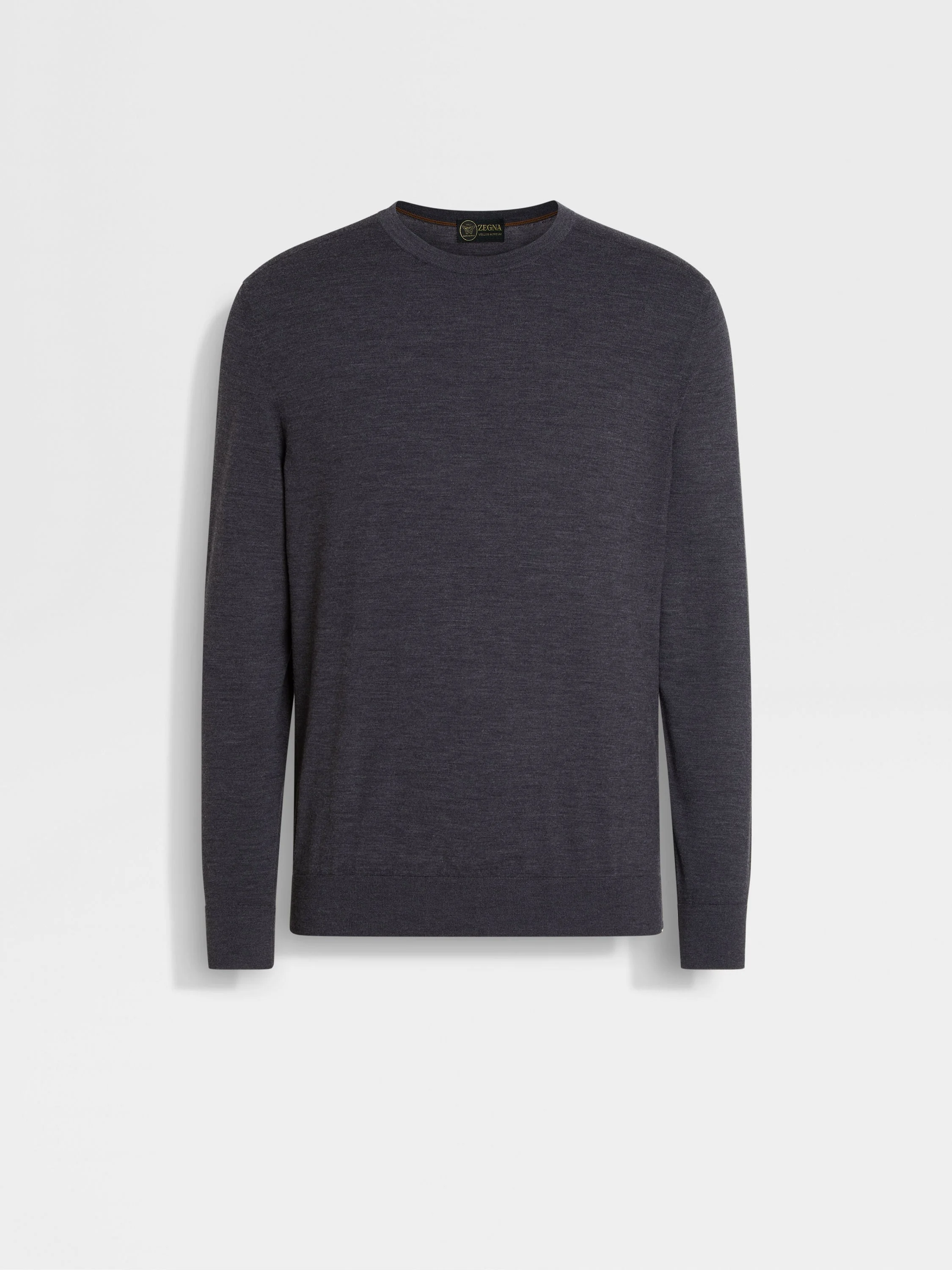 This dark grey Vellus Aureum crewneck epitomizes ZEGNA's vision of elevated basics. INFO Crafted from the finest quality wool, this Vellus Aureum crewneck combines comfort and sophistication in equal measures. A refined dark grey colorway and timeless silhouette edged with ribbed trims make it an effortless choice for both formal and casual occasions alike. PRODUCT CODE UGA00A2-VELCRW-K98 MATERIALS AND CARE 100% Wool Vellus Aureum was inspired by our Founder’s quest for excellence to seek the finest wool in the world. Exquisitely fine in texture and rare, Vellus Aureum is crafted from 100% certified traceable wool fibres. Wash by hand. Do not bleach. Do not tumble dry. Flat drying. Iron at max 110°C. Professional dry cleaning in hydrocarbons, mild process. Wash and iron inside out. FIT AND PRODUCT DETAILS • Regular fit • 21 gauge • Ribbed crewneck collar • Ribbed hem and cuffs