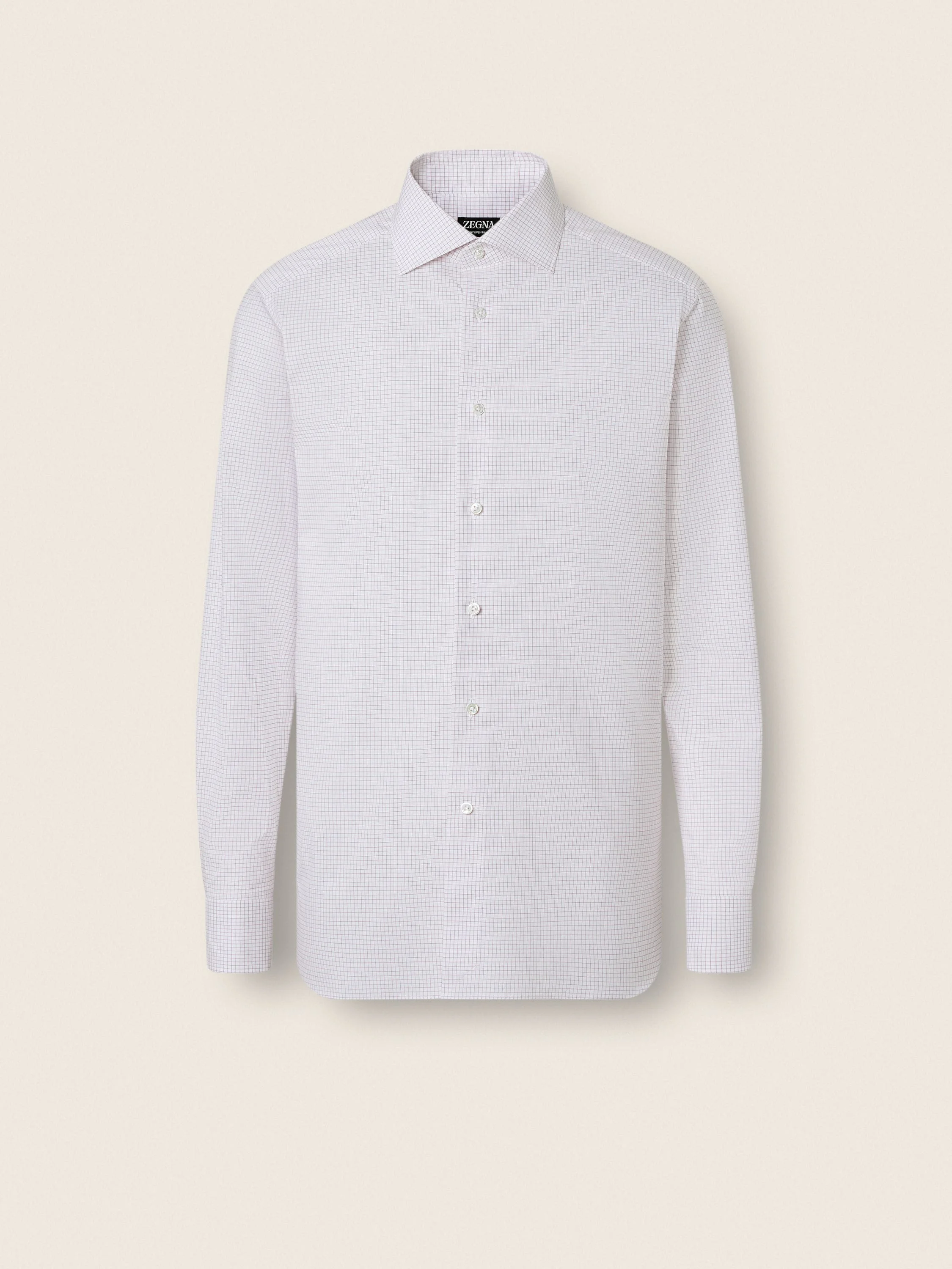 This dark pink and white checked shirt showcases the luxuriously soft feel of ZEGNA's Centoventimila cotton. INFO ZEGNA's unwavering standards in the world of fine menswear give rise to this silky smooth Centoventimila cotton shirt, featuring a charming dark pink and white checked pattern. A pointed collar completes the silhouette with a traditional touch. PRODUCT CODE 302152A3-9NS0PR MATERIALS AND CARE 100% Cotton Centoventimila – Italian for 120,000 – is named after its high thread count. Garments crafted from this fabric are extremely lightweight and have a soft, silk-inspired hand feel. Max washing temp 40°C. Do not bleach. Do not tumble dry. Iron at max 150°C. Professional dry cleaning in tetrachloroethene and hydrocarbons. FIT AND PRODUCT DETAILS • Regular fit • Tailoring shirt • Pointed collar • Rounded hem • Standard cuffs • Button closure • Checked pattern • 79 cm length on size 39
