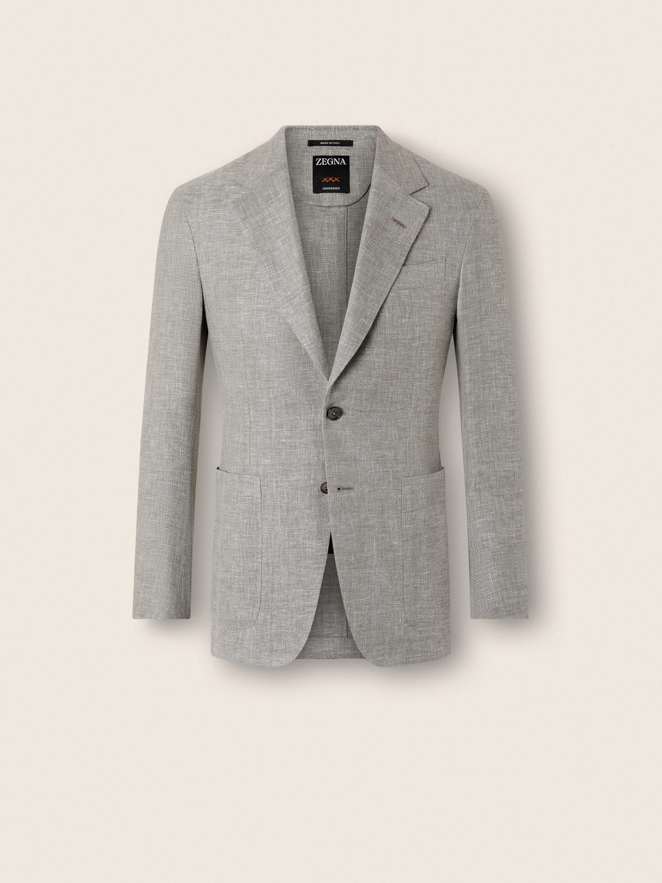 Embrace effortless tailoring in this dark taupe and white Crossover jacket, made from a blend of linen, wool and silk. INFO A dark taupe and Bianco Oasi colorway in ZEGNA's linen-wool-silk Crossover: this cardigan jacket interprets warm-weather tailoring to perfection. Its deconstructed silhouette is enriched with sartorial double vents and notch lapels. Bianco Oasi (bja’nko) – ITALIAN FOR 'WHITE', this is the colour of our raw wool, crafted in our Lanificio in Oasi Zegna. The tone is identified as a neutral, off-white. PRODUCT CODE 349524A3-10JCN0 MATERIALS AND CARE 46% Linen; 31% Wool; 19% Mulberry Silk; 3% Polyamide; 1% Elastane Do not wash. Do not bleach. Do not tumble dry. Iron at max 110°C. Professional dry cleaning in tetrachloroethene and hydrocarbons, mild process. FIT AND PRODUCT DETAILS • Regular fit • Tailoring jacket • Double vents • Notch lapels • Button closure • Patch pockets • Deconstructed, canvas • Unlined • 75 cm length on size 48 Sleeves hems are unfinished. You can bring your jacket to our boutiques for alterations.