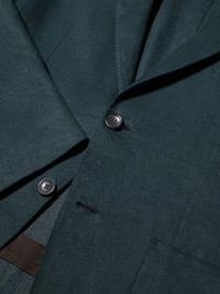 This dark teal blue cardigan jacket is crafted from Zegna's Oasi Lino Blue Flower fabric. INFO This cardigan jacket continues Zegna's legacy of sartorial perfection and it's styled with classic notch lapels. The frosted finish of our Oasi Lino Blue Flower fabric imbues authentic charm into its dark teal blue colorway. PRODUCT CODE 973N38A9-10JCN0 MATERIALS AND CARE 100% Linen Oasi Lino Blue Flower is inspired by the rare and short-lived blooms of the flax plant. It's crafted exclusively from exceptionally fine European linen, which imbue it with impeccable smoothness and a unique frosted appearance. Made exclusively from fibres that are 100% traceable from 2024, Oasi Lino follows in the footsteps of our founder, who envisioned a vertically integrated system of producing textiles. Do not wash. Do not bleach. Do not tumble dry. Professional dry cleaning in tetrachloroethene and hydrocarbons, mild process. FIT AND PRODUCT DETAILS • Regular fit • Tailoring jacket • Double vents • Notch lapel • Button closure • Patch pockets • Deconstructed, canvas • Unlined • 74 cm length on size 48 Sleeves hems are unfinished. You can bring your jacket to our boutiques for alterations.