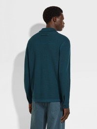 Experience the luxury of pure wool in this dark teal blue shirt. INFO Knitwear meets tailoring to create this dark teal blue pure wool shirt. A textured three-dimensional stitch brings modern charm to its timeless long-sleeve silhouette, styled with a classic collar and tubular hem. PRODUCT CODE UFM23A9-FCT145-T09 MATERIALS AND CARE 100% Wool Wash by hand. Do not bleach. Do not tumble dry. Flat drying. Iron at max 110°C. Professional dry cleaning in hydrocarbons, mild process. Wash and iron inside out. FIT AND PRODUCT DETAILS • Tridimensional stitch • Shirt collar • Tubular hem • Shirt cuffs • Button closure