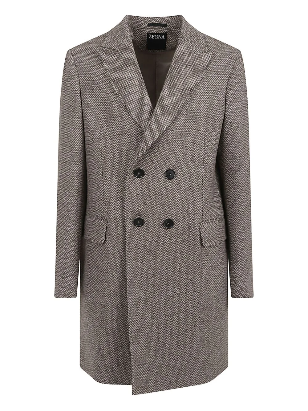 double-breasted herringbone-effect coat Highlights - Brown - Herringbone pattern - Double-breasted - Button fastening - Peak lapels - Flap pockets Imported Composition Fabric 100% Washing instructions Read Manufacturer Guidelines