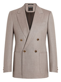 double-breasted wool jacket Highlights - Taupe brown - Double-breasted - Button fastening - Patch pockets - Peak lapels - Buttoned cuffs Made in Italy Composition Outer: Wool 100% Washing instructions Read Manufacturer Guidelines