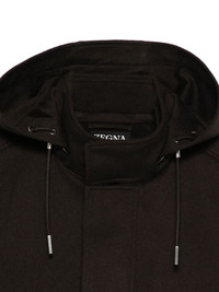 drawstring-hood coat Highlights - Brown - Drawstring hood - Front pockets - Long sleeves - Button fastening Imported Composition Lining: Polyester 100% Outer: Cashmere 100%, CALFSKIN 100% Washing instructions Read Manufacturer Guidelines