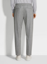 Luxury materials elevate the grey melange 15milmil15 wool joggers. INFO Zegna's superfine Australian wool is blended with silk and cashmere to create the grey melange 15milmil15 wool joggers. As part of a vision of luxury leisurewear, this refined material is paired with a familiar, sporty style and sewn details. The joggers are lined with cotton, and a drawstring waistband ensures the perfect fit. PRODUCT CODE UEI20A8-TT18-K94 MATERIALS AND CARE Main body: 89% Wool; 6% Mulberry Silk; 5% Cashmere Lining: 100% Cotton 15milmil15 is crafted from superfine wool that measures just 15.2 microns in diameter. Incredibly soft and lightweight, it is well suited for sophisticated garments. Do not wash. Do not bleach. Do not tumble dry. Iron at max 110°C. Professional dry cleaning in hydrocarbons, mild process. Wash inside out. Protect metal tips during washing. FIT AND PRODUCT DETAILS • Jogger fit • 17.5 open hem • Drawstring closure • Sewn details • Slanted pockets and back welt pocket