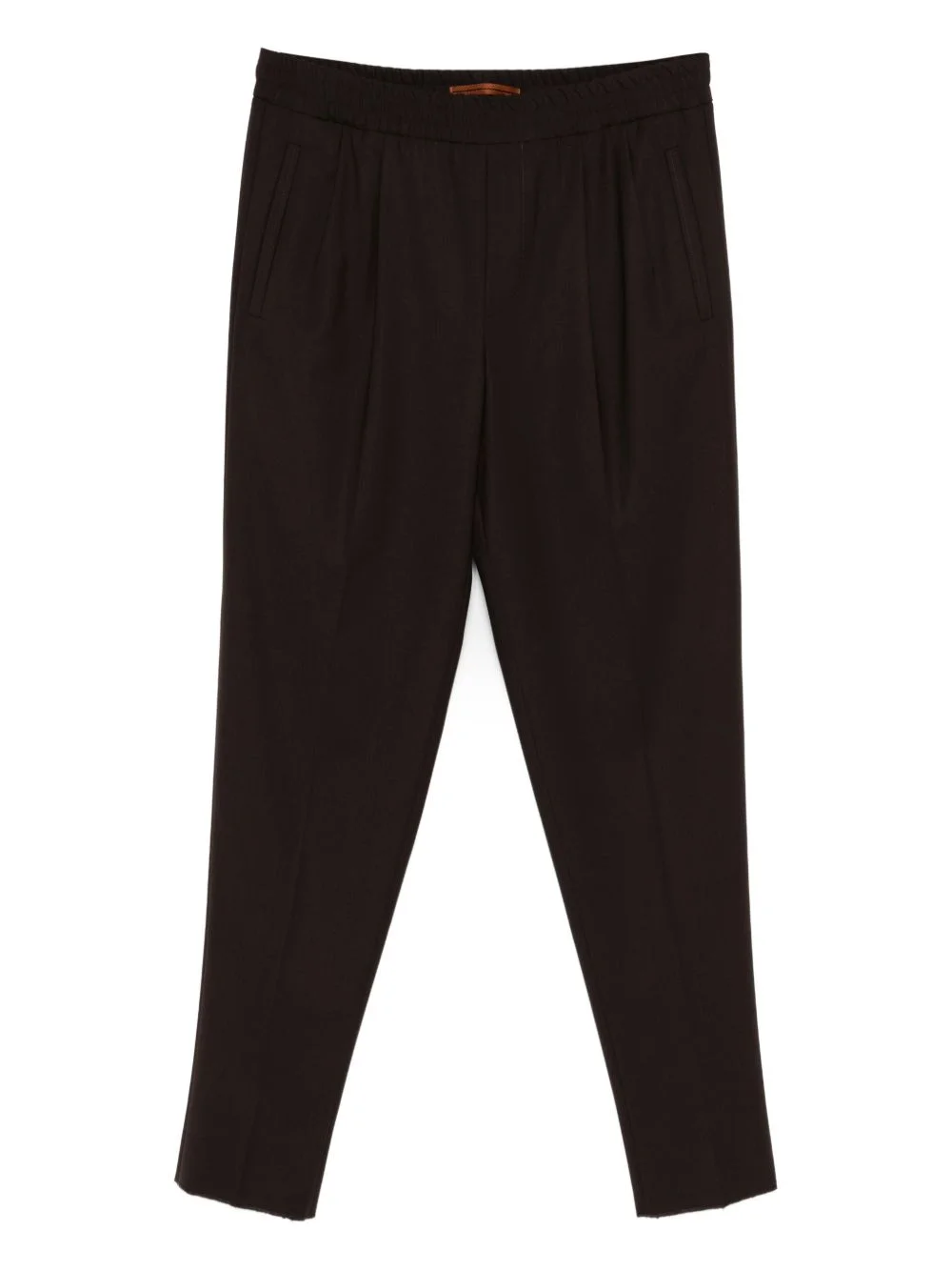 elasticated pleated trousers Highlights - Brown - Elasticated waistband - Pleated front - Side pockets - Straight leg - Regular finish Made in Italy Composition Outer: Polyester 53%, Wool 44% Lining: Cotton 100% SIZE & FIT Model measurements Height 6 ft 1 in(1.86 m) Bust/Chest 35.43 in(90 cm) Hips 35.03 in(89 cm) Waist 29.13 in(74 cm) Washing instructions Dry Clean Only