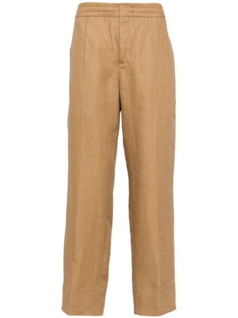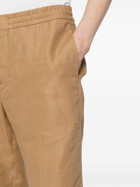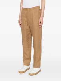 elasticated slim-fit trousers Highlights - Light brown - Linen/cotton - Elasticated waistband - Two side inset pockets - Two rear welt pockets - Slim cut Made in Italy Composition Outer: Linen/Flax 100% Lining: Cotton 100% SIZE & FIT Model measurements Height 6 ft 2 in(1.87 m) Bust/Chest 34.25 in(87 cm) Hips 36.22 in(92 cm) Waist 29.52 in(75 cm) FittingInformation Designed for a straight-leg, allowing for an unrestricted and comfortable fit over the leg The elasticated waist allows for a comfortable fit Made from a midweight non-stretch fabric This piece fits true to size – take your usual size