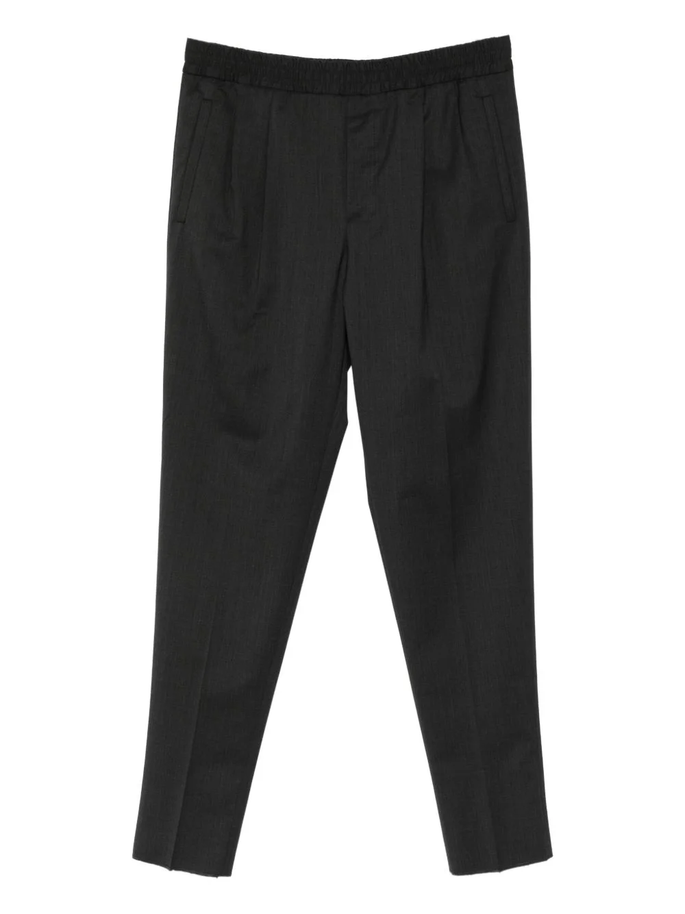 elasticated-waist tapered trousers Highlights Imported Composition Outer: Wool 54%, Polyester 45%, Elastane 1% Lining: Cotton 100% SIZE & FIT Model measurements Height 6 ft 3 in(1.9 m) Bust/Chest 35.43 in(90 cm) Hips 35.82 in(91 cm) Waist 27.95 in(71 cm)