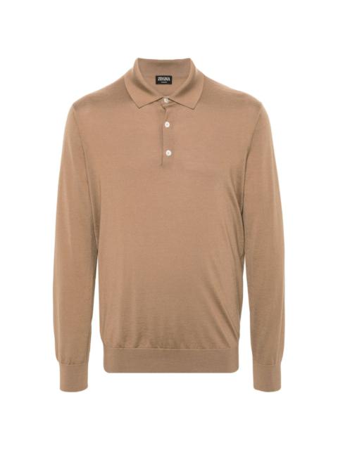 fine-knit polo shirt Highlights - Camel brown - Cashmere-silk blend - Fine knit - Ribbed polo collar - Long sleeves - Ribbed cuffs and hem - Short front button fastening Made in Italy Composition Cashmere 70%, Silk 30% SIZE & FIT Model measurements Height 6 ft 0 in(1.84 m) Bust/Chest 34.64 in(88 cm) Hips 35.03 in(89 cm) Waist 27.95 in(71 cm) FittingInformation Designed for a relaxed fit, this polo shirt offers comfort and movement The ribbed hem offers a close, comfortable fit Made with a midweight knit, this piece offers some stretch This piece fits true to size – take your usual size