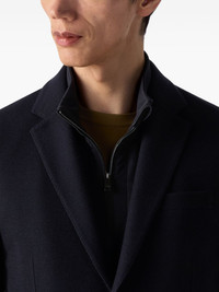 flap-pocket blazer Highlights - Navy blue - Zip fastening - Flap pockets - Two-button fastening Made in Italy Composition Wool 63%, Cotton 37% Washing instructions Read Manufacturer Guidelines