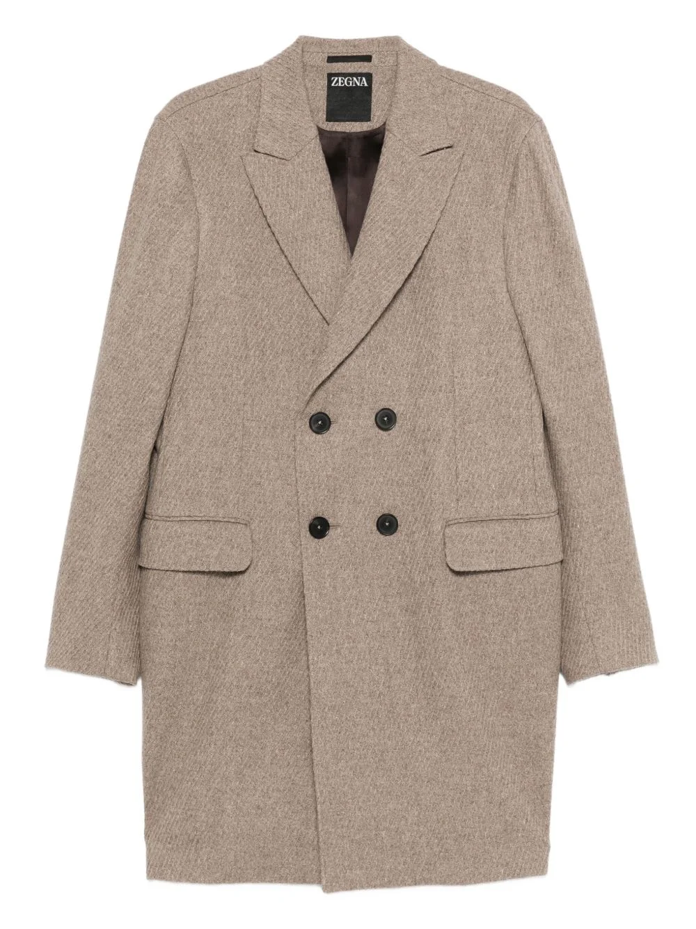 flap-pocket double-breasted coat Highlights - Beige - Double-breasted - Notched lapels - Front button fastening - Front flap pockets - Long sleeves Imported Composition Fabric 100% Washing instructions Read Manufacturer Guidelines