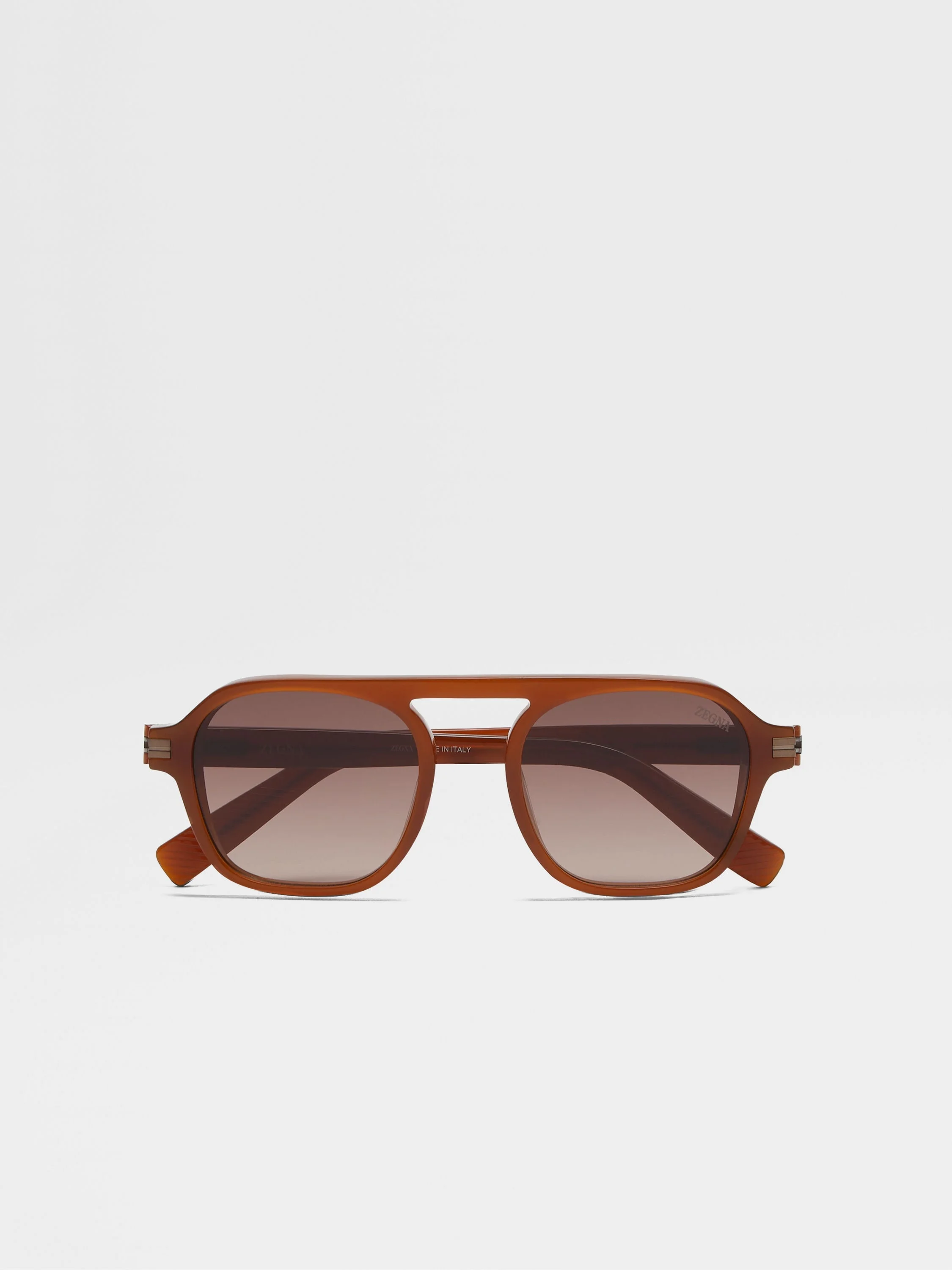 The Foliage Aurora II acetate sunglasses are presented in an elegant, natural colorway. INFO Reviving a classic silhouette, the Foliage Aurora II acetate sunglasses pair rounded, gradient brown lenses with a thick bridge and a shiny finish. The metallic Zegna 232 Road Brand Mark on the temples adds a pop of contrast, while the ends of the temples are fitted with grip inserts for a secure fit. The inspiration for the Aurora II Sunglasses, Aurora the Italian word for Sunrise, was Born in Oasi Zegna, the home of ZEGNA’s values in the Italian Alps. Capturing the essence of a new era at ZEGNA, the Aurora II sunglasses are shaped to a classic silhouette that's hallmarked with our contemporary Zegna Logo and iconic 232 Road Brand Mark. PRODUCT CODE EZ0241-5145F MATERIALS AND CARE Full Acetate Clean your eyewear using a soft cloth, preferably microfiber, with water or a mild detergent. To avoid scratching the lenses, never use paper towels or clothing to clean your eyewear. Do not use household detergents or soaps to clean your eyewear; these products will damage the lenses over time. FIT AND PRODUCT DETAILS • Lens 51 mm – Bridge 20 mm – Temple 145 mm • Base 2 • Finishing: shiny • Suitable for mounting prescription lenses • Metallic insert on the temples as a corner detail • Single bridge • Zegna Logo on the lens • Light gold metallic resin-encased Zegna Logo on the inside of the right temple • Zegna 232 Road Brand Mark on the temples