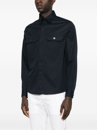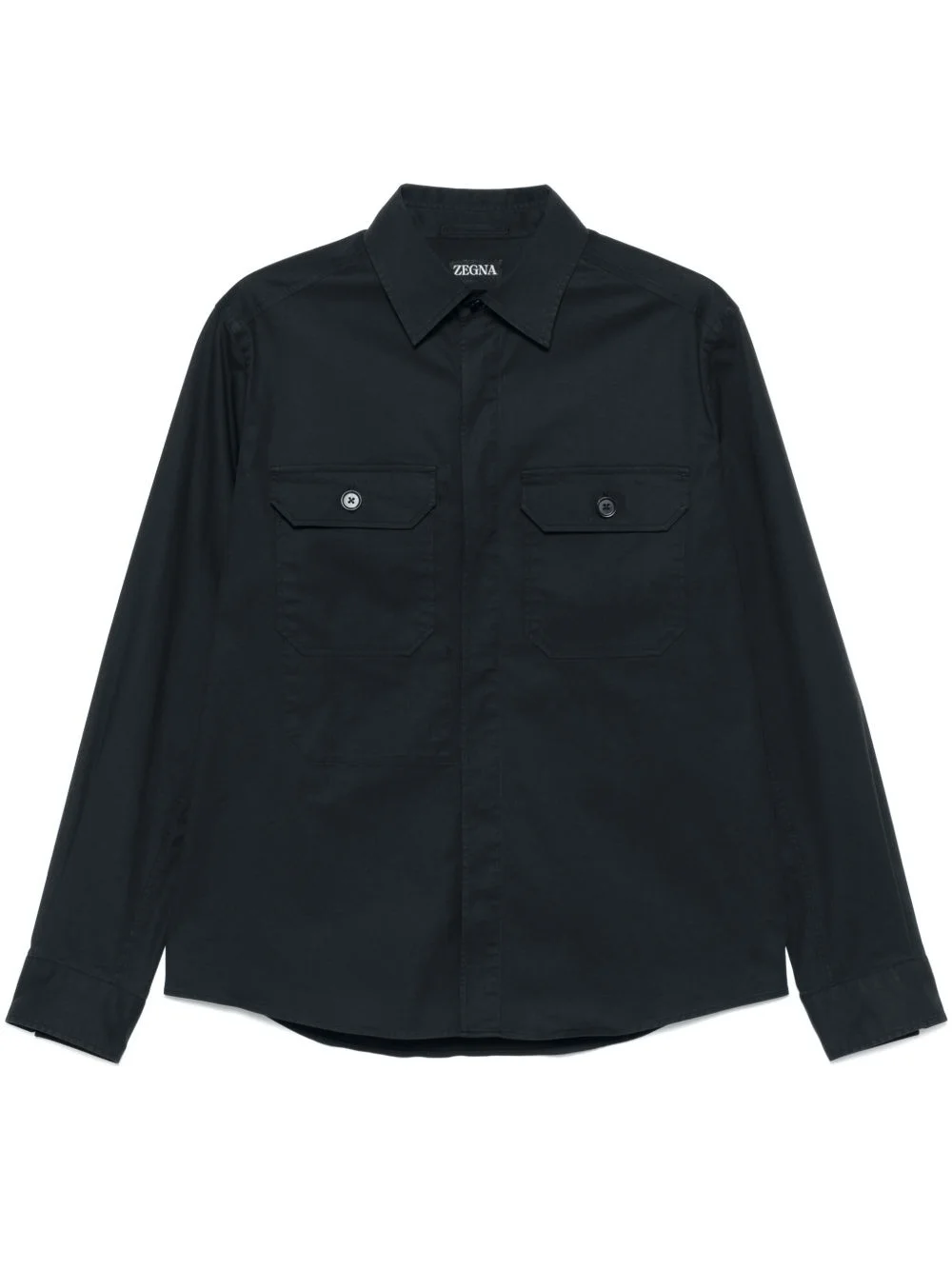 gabardine-weave shirt Highlights - Navy blue - Front button fastening - Two chest flap pockets - Long sleeves - Buttoned cuffs Made in Italy Composition Cotton 96%, Elastane 4% SIZE & FIT Model measurements Height 6 ft 2 in(1.87 m) Bust/Chest 36.41 in(92.5 cm) Hips 37 in(94 cm) Waist 29.52 in(75 cm) FittingInformation Designed for a regular fit, allowing for a comfortably loose fit throughout the body Made from a midweight stretch fabric, this piece offers elasticity and flexibility when worn