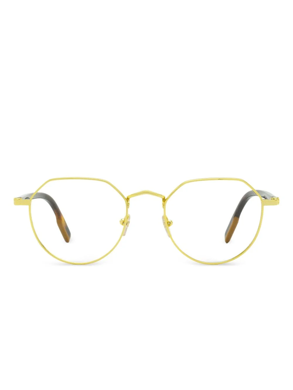 geometric lens glasses Highlights Made in Italy Composition Metal 100%, Acetate 100% SIZE & FIT Measurement Bridge Width 0.74 in(1.9 cm) Lens Diameter 1.96 in(5 cm) Arm Length 5.7 in(14.5 cm)