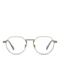 geometric single-bridge glasses Highlights - Grey - Geometric frame - Single bridge - Adjustable nose pads - Anti-slip texture on the temple tips - These glasses come with a protective case. - All glasses from farfetch are sold as non-prescription frames. Imported Composition Metal 100%, Plastic 100% SIZE & FIT Measurement Arm Length 5.7 in(14.5 cm) Bridge Width 0.74 in(1.9 cm) Lens Diameter 2 in(5.1 cm)