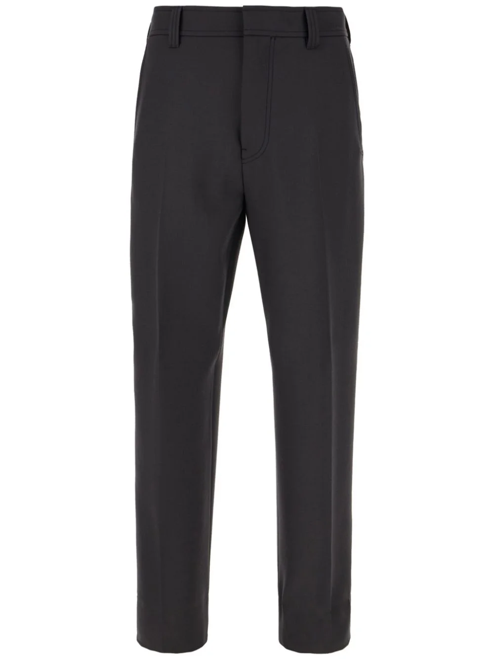 wool tapered trousers Highlights - Dark grey - Wool - Pressed crease - Concealed front fastening - Belt loops - Two side slit pockets - Two rear patch pockets - Tapered leg Made in Italy Composition Wool 100%