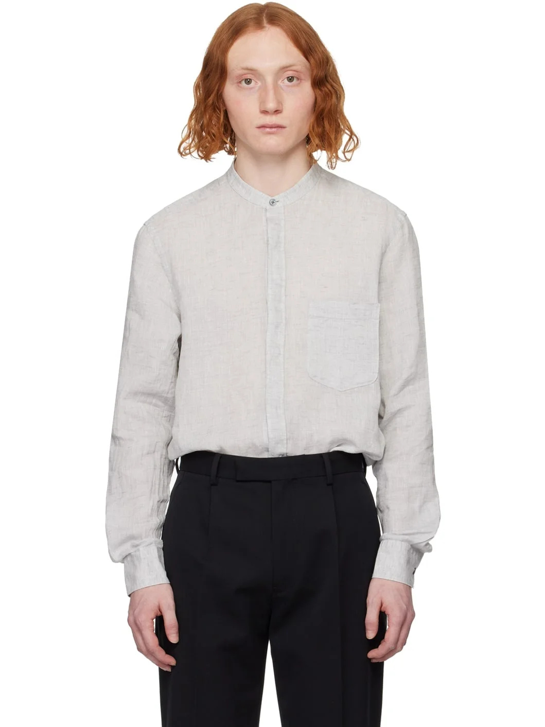 Plain-woven linen shirt. · Band collar · Concealed button closure · Patch pocket · Two-button barrel cuffs Supplier color: Light grey