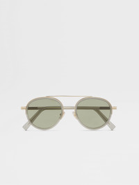 Round lenses and a brow bar give the green Orizzonte II acetate and metal sunglasses their unique look. INFO The straight brow bar seems to float over the green Orizzonte II acetate and metal sunglasses' round lenses. The shiny acetate frame is fitted with green lenses, complementing the minimalist design with a monochrome palette. The temples are accentuated with the Zegna 232 Road Brand Mark and grip inserts at the tips. The inspiration for the Orizzonte II, Orizzonte the Italian word for Horizon, Sunglasses was Born in Oasi Zegna, the home of our values in the Italian Alps. Shaped to a contemporary unbridged silhouette, the Orizzonte II sunglasses are accented with our iconic 232 Road Brand Mark and Zegna Logo, then finessed with a slender brow bar that draws from the panoramic mountain-top views in our 100km² natural territory. PRODUCT CODE EZ0242-5120N MATERIALS AND CARE Acetate; Metal Clean your eyewear using a soft cloth, preferably microfiber, with water or a mild detergent. To avoid scratching the lenses, never use paper towels or clothing to clean your eyewear. Do not use household detergents or soaps to clean your eyewear; these products will damage the lenses over time. FIT AND PRODUCT DETAILS • Lens 51 mm – Bridge 21 mm – Temple 145 mm • Base 2 • Acetate finishing: shiny • Metal finishing: matte • Suitable for mounting prescription lenses • Single bridge • Zegna Logo on the lens • Laser-inscribed Zegna Logo on the inside of the right temple • Zegna 232 Road Brand Mark on the temples