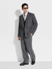 Modelled in ZEGNA's Fashion Show, this grey and black checked jacket is crafted from wool and cashmere. INFO A sublime blend of wool and cashmere provides an elegant canvas for a grey and black checked pattern with this single-vent jacket. Peak lapels and patch pockets enrich the silhouette with timeless sartorial charm. PRODUCT CODE 2P7047A2-112DH0 MATERIALS AND CARE Main body: 91% Cotton; 9% Cashmere Leather details: Calfskin Do not wash. Do not bleach. Do not tumble dry. Iron at 110°C. Professional dry cleaning in tetrachloroethene and hydrocarbons, mild process. FIT AND PRODUCT DETAILS • Regular fit • Tailoring jacket • Double breast • Single vent • Peak lapels • Button closure • Checked pattern • Patch pockets • Canvas construction • Lined • 76 cm length on size 48