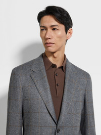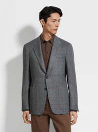 Choose effortless elegance in this grey and light taupe jacket made from ZEGNA's exclusive Oasi Cashmere. INFO This grey and light taupe over-checked jacket is crafted from luxurious Oasi Cashmere: an exclusive fabric spun from meticulously selected fibers in honor of ZEGNA's commitment to traceability. Left unlined, its elegant silhouette is elevated with classic notch lapels and patch pockets. PRODUCT CODE 269528A2-10JCN0 MATERIALS AND CARE 100% Cashmere The inspiration behind this Oasi Cashmere collection garment was born in Oasi Zegna, a 100km² natural territory and the home of our values. It's crafted from Oasi Cashmere fibres, made with 100% certified traceable fibres. The Oasi Cashmere collection follows in the footsteps of our Founder, who envisioned a vertically integrated system of producing textiles. Do not wash. Do not bleach. Do not tumble dry. Iron at max 110°C. Professional dry cleaning in tetrachloroethene and hydrocarbons, mild process. FIT AND PRODUCT DETAILS • Regular fit • Tailoring jacket • Double vents • Notch lapels • Over-checked pattern • Button closure • Patch pockets • Deconstructed, canvas • Unlined • 75 cm length on size 48