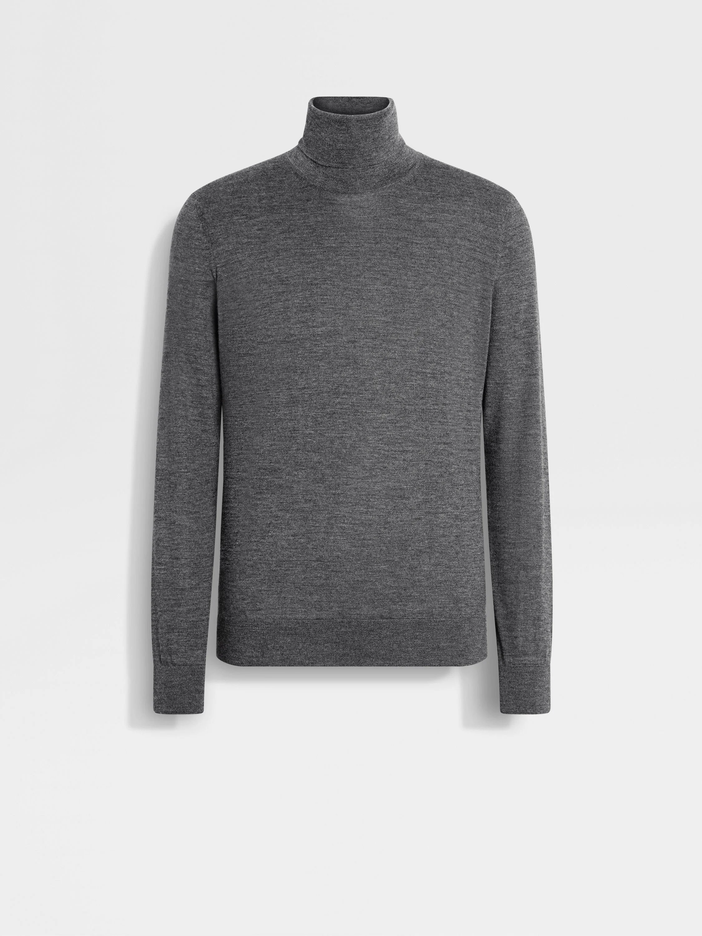 The grey melange Cashseta turtleneck brings together the best of cashmere and silk. INFO ZEGNA's refined blend of luxury fibers lends the grey melange Cashseta turtleneck its distinctive finish. This special material is yarn-dyed, creating subtle variations in each garment. A staple of sophisticated wardrobes, the turtleneck creates a sleek silhouette. PRODUCT CODE UGJ00A2-120-K96 MATERIALS AND CARE 70% Cashmere; 30% Mulberry Silk This sophisticated fabric combines the softness of cashmere with the smooth finish of fine silk. The yarns of Cashseta are dyed before the fabric is created, resulting in a melange that is unique to each garment. Wash by hand. Do not bleach. Do not tumble dry. Flat drying. Iron at max 110° C. Professional dry cleaning in hydrocarbons, mild process. Wash and iron inside out. FIT AND PRODUCT DETAILS • 18 gauge • Ribbed turtleneck collar • Long sleeves • Ribbed hem and cuffs