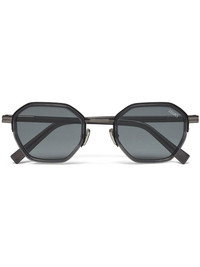 hexagon-frame sunglasses Highlights - Grey - Acetate - Hexagonal frame - Curved tips - Grey tinted lenses - Nose pads - These glasses come with a protective case. Made in Italy Composition Acetate 100% SIZE & FIT Measurement Arm Length 5.7 in(14.5 cm) Bridge Width 0.94 in(2.4 cm) Lens Diameter 1.96 in(5 cm)