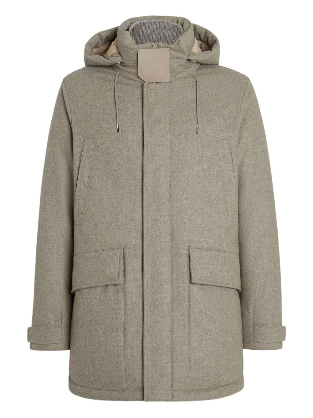 hooded parka coat Highlights - Grey - Classic hood - Flap pockets - Concealed zip fastening - Wool Imported Composition Wool 100% Washing instructions Read Manufacturer Guidelines