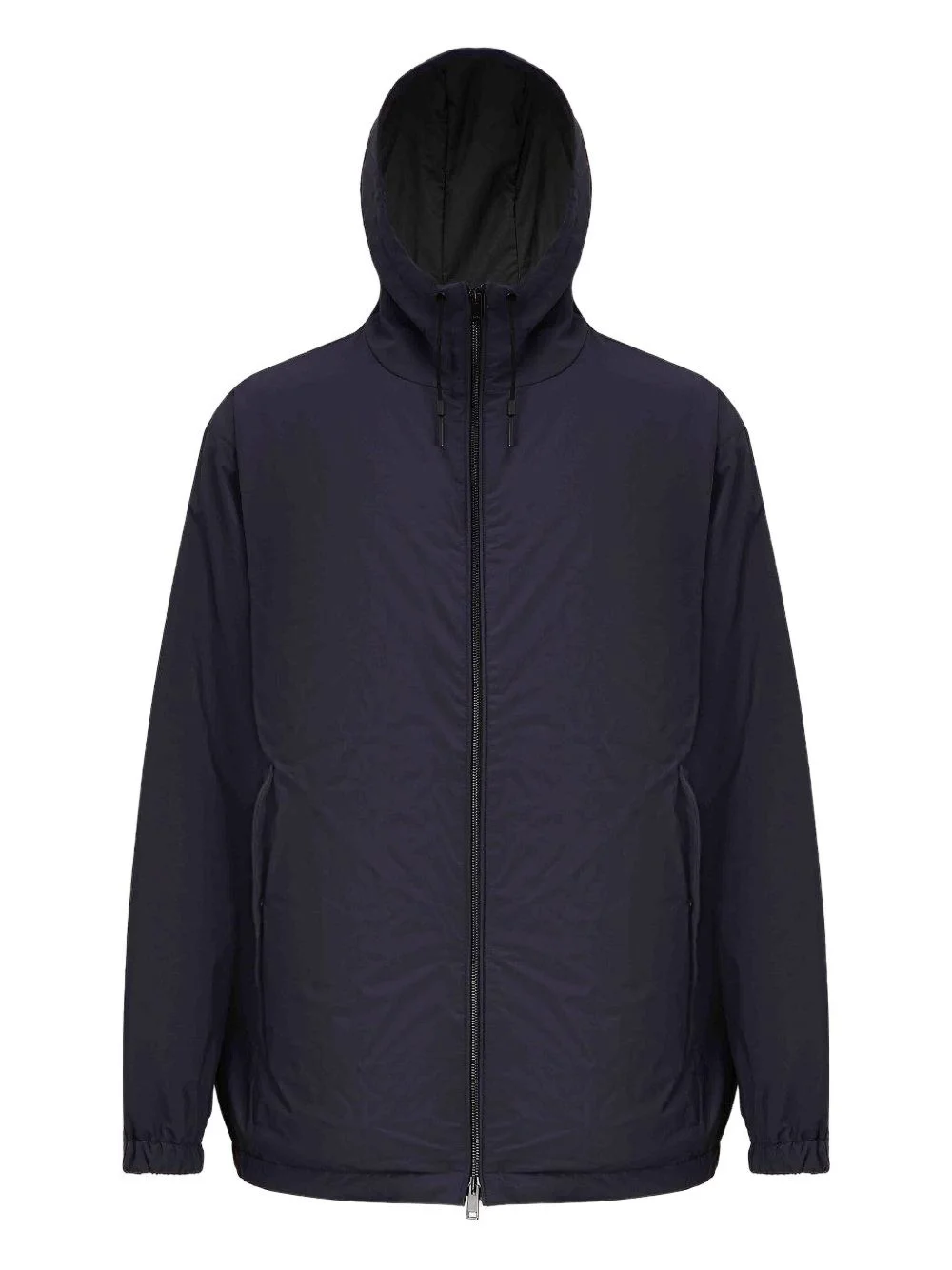 hooded zip-up jacket Highlights - Dark blue - Hooded neckline - Front zip fastening - Long sleeves - Cuffed sleeves - Drawstring detail Imported Composition Fabric 100% Washing instructions Read Manufacturer Guidelines