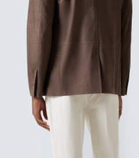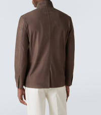 Established with the aim to create the world’s finest fabrics, Zegna is now the go-to brand for luxurious and innovative menswear. Named after the brand's founder, the Il Conte jacket is constructed from signature lightweight leather to a precise silhouette with a slim fit. Product Details - Material: 100% leather - Care instructions: dry clean - Made in Italy - Designer color name: Dark Taupe - Item color: brown - Lining: 53% cotton, 47% cupro - Sleeve lining: 100% cupro - Closure: button-down - Pockets: flap pockets, internal pockets - Item number: P01010464 Size & Fit - True to size - Straight fit - Non-stretchy fabric - Falls to the hip - The model in the picture is 185cm-6'1" and wearing a size IT 50
